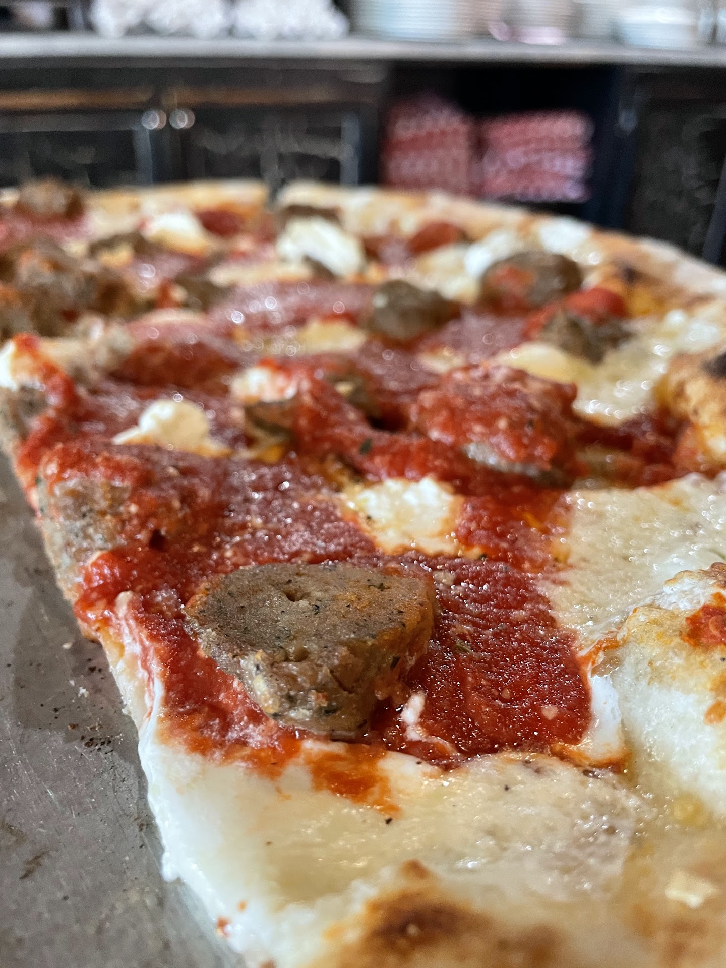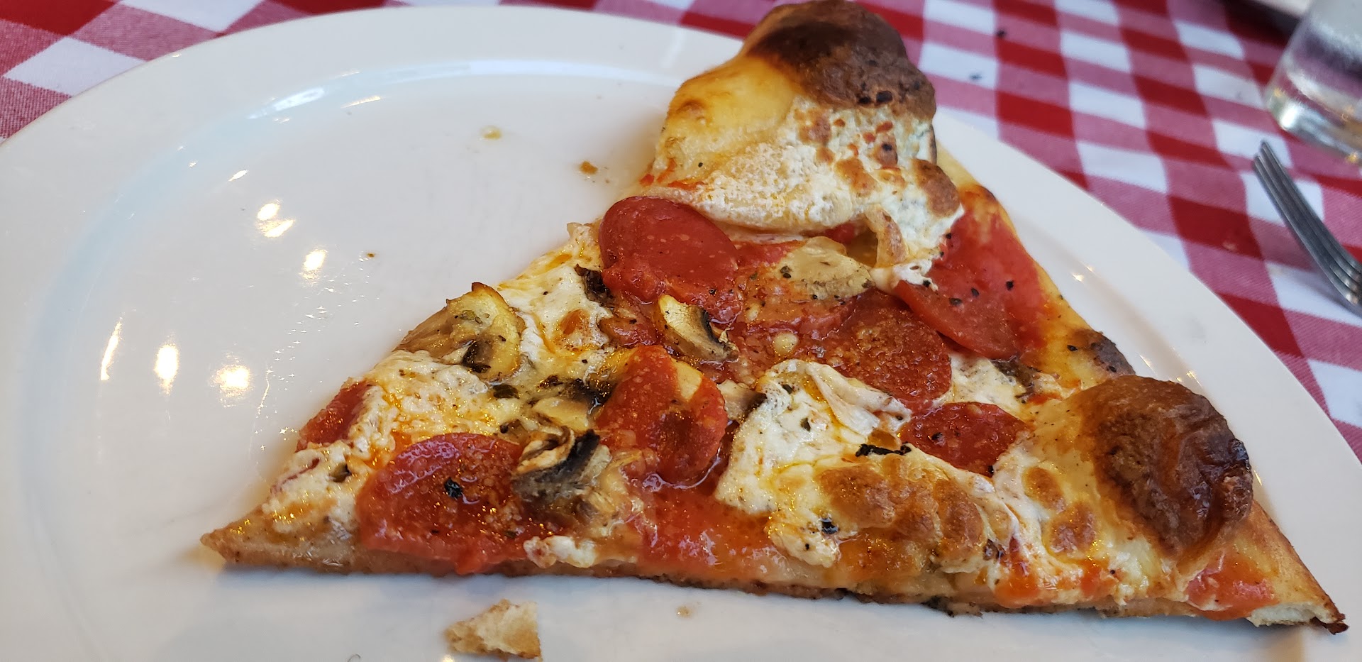 Fantastic food. Salads are super and in giant portions. Really neat atmosphere. Old pictures of NewYork City are all over walls. Spacious, spotlessly clean and very modern interior make for a great pizza place.