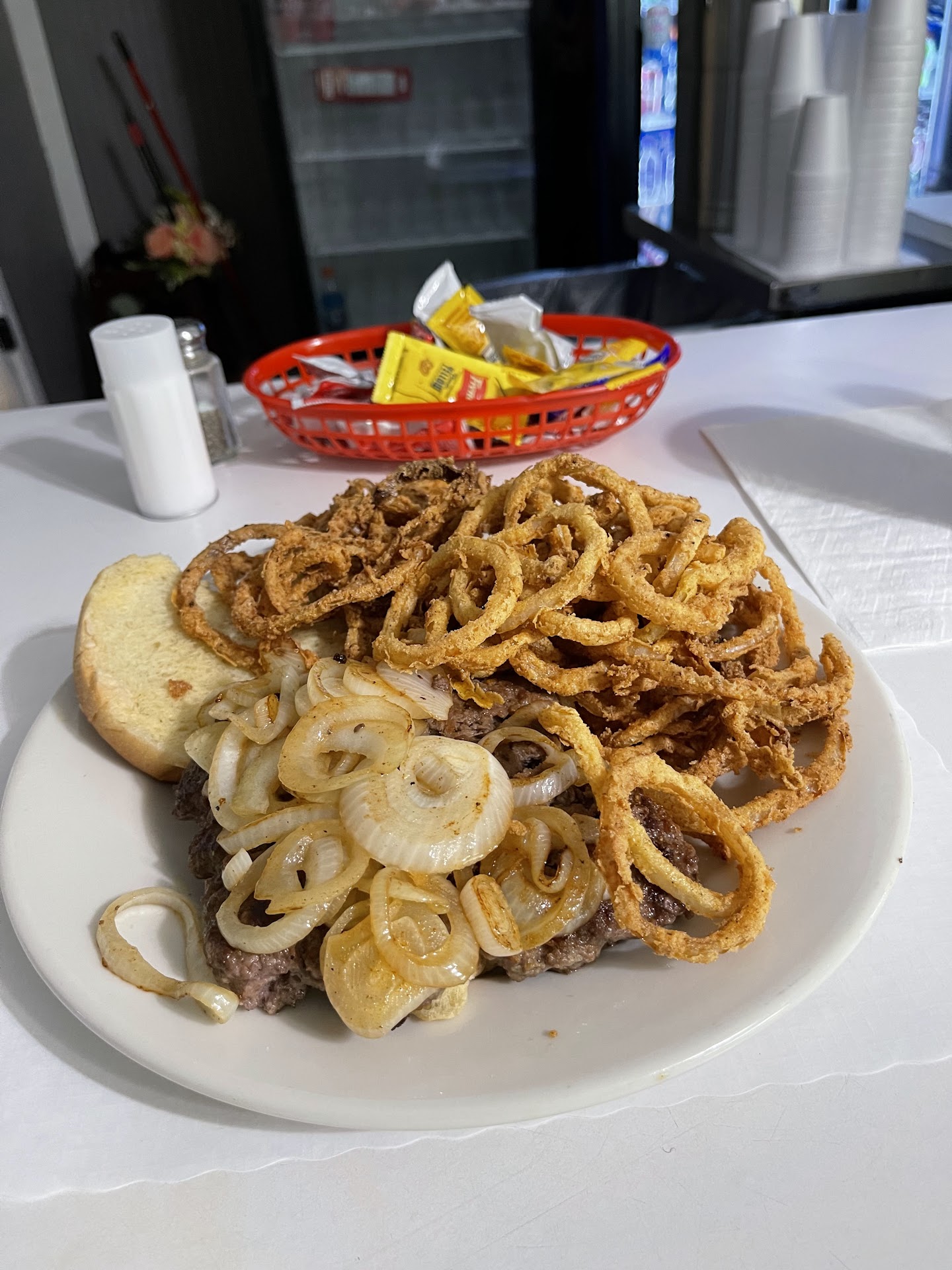 Read moreNever heard of this place but my son said he’d been hearing good things. Thought I’d been transported back in time. Blues music out of a stereo was first clue this was going to be different. Older black gent wearing a yellow shirt, suspenders and a fedora asked me what I wanted. Told him burger with grilled onions. When he said the onion rings were fresh I was all in. About 15 minutes later I got a plate of some of the best onion rings around as well as a burger with so many grilled onions that I wasn’t sure there was a burger underneath when the order came. I could barely eat half. What a way to clog your arteries!...