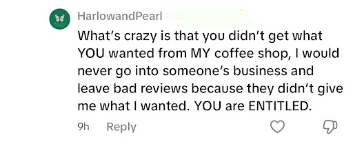 I saw this place on tiktok and decided to give it a try. I ordered something pretty simple but it slightly deviated from the menu. I still got a drink but it wasn’t anything spectacular and it seemed like people on tiktok really hyped up the “experience” of the place more than the coffee. I wasn’t really impressed with either. When I saw it again on tiktok, I left a comment saying pretty much what I just said above, and Harlow & Pearl took to tiktok themselves to leave a comment. Now I don’t know about you, but I believe we all have our personal preferences and for me, this place wasn’t mine. I’m new to the area, gave it a shot, and it wasn’t for me mostly because a lot of coffee shops can and will tailor to what you’re asking for if they have the flavor you’re asking for. Apparently they have a different process here, which I wasn’t aware of and wasn’t informed of when I bought my drink. I didn’t think much of it or the comment until this morning when I got a notification that Harlow & Pearl mentioned me on tiktok. The comment is below for you to read. As someone who tries to support small and locally owned, I always appreciated the experience of personalized customer service, but their comment suggested I was entitled for sharing my opinion? It seems like more and more small business owners nowadays want the perks of owning and operating their business their way, but feel like someone is entitled or asking for too much or simply can’t handle any type of negative feedback. I was raised under the concept that you grow from negative feedback and especially in a business setting, should use it constructively. But it doesn’t appear that they can do that. I don’t know if they were just having a bad day or what the problem is, but taking to tiktok to call someone entitled feels wildly...