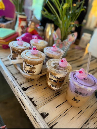Read moreWe saw this shop on TikTok and thought it looked cute. We happened to be in town for my nieces wedding this week so of course we made it a stop on our list. I had the Ube latte which was delicious ( my husband was mad at himself for not getting a coffee after he tasted it) my daughter had the chai tea latte and said it was one of the best she’s had. She loves the Tzo tea but the extra touches they added at Harlow and Pearl really elevated the flavor. My son wanted a frozen hot chocolate which I knew they wouldn’t have when he asked but the owner was so sweet and made him a special chocolate milk. The rest of my party all loved the drinks they got, so much so we all stopped again on wedding day to “get the bride a coffee” it was a Saturday so it was very busy and they were sold out of the latte I wanted but the latte I got was delicious. The owner was super sweet and accommodating saying upfront when we had to order something we hadn’t planned that if anyone didn’t like what they got she would happily remake it. She even gave us special charms for our wedding day cups. All in all this is a super cute spot with very very friendly staff. Keep in mind it’s a small spot inside a shop so it can get busy especially on...