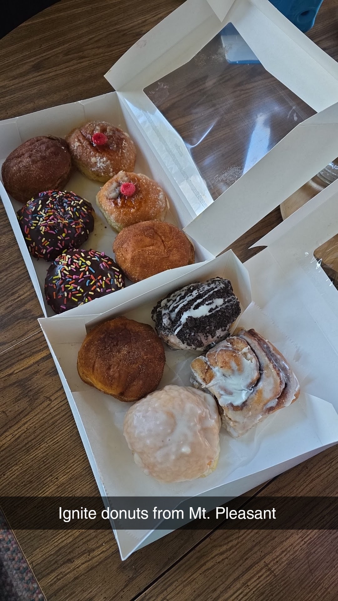 After seeing the Ignite Donuts Instagram page (it's very funny I'd recommend checking it out) pop up on my social media over the past week, I knew I had to stop by! The shop has a warm atmosphere, and an incredible array of donuts to pick from. He had 25 options to pick from when I walked in at 7:15am.