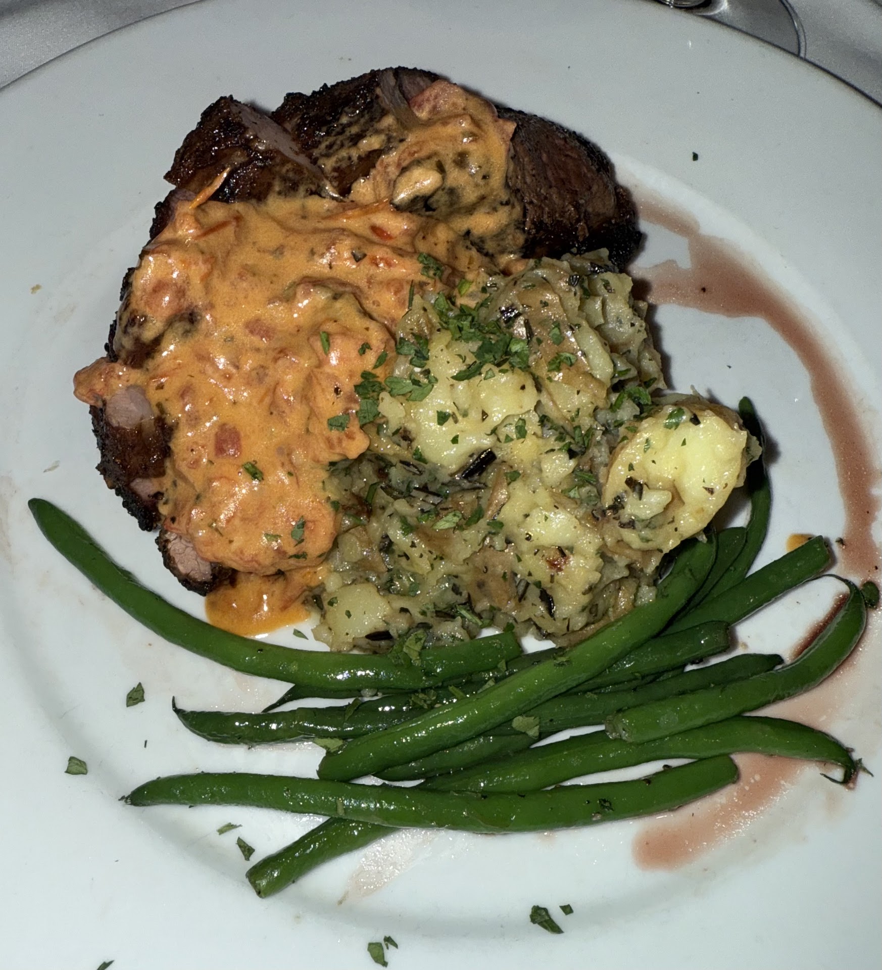 From the moment we entered the beautifully appointed restaurant, the ambiance set the perfect tone for our special evening. The warm, intimate lighting and tasteful decor created a cozy atmosphere, while the attentive staff made us feel like we were their only priority.