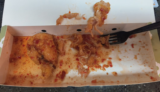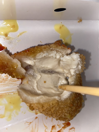 The ONLY reason they are getting even two stars is because they were so nice. They were so nice I feel bad about leaving this review but I have to let others know. I ordered the four piece chicken tenders with sweet Thai chili sauce. I opened the box to find the sauce poured all over the chicken instead of on the side but that's okay I guess, though they were already a bit soggy. I was excited to see that it was a tempura batter, though I could not figure out why they were all curled up, all four of them. I found out pretty quick when I've been into the first one. I pulled back a mouth full of inedible rubber. Even it was chicken breasts, they didn't take the skin off. So what you see in the first picture is the one remaining chicken "tender" with the pile of skin from some of the other ones that I left in the box for the photo. In the second picture I'm holding the fourth one and you can see where I've peeled off the skin and how thick it is and obviously not something you can eat. It was incredibly disappointing. I was also very specific in saying I couldn't have any spice in making sure that the sauce was not at all spicy. I guess it's not spicy to them but it definitely had a kick so I pretty much had to scrape all the sauce off. So I had plain chicken breasts once I tore everything else off. Considering how expensive they were, wow. I don't even know what to say. Then there's the tea. My daughter adores boba and mochi so I thought this would be a win-win. She also adores sugar. The peach fruit tea with peach boba was so sweet that she couldn't drink it. She had a few sips. It was $6.75. after tax and tip and my drink, I spent close to $30 and we threw most of it away. Very sad. They worked pretty hard on the place and it's cute, but not a lot of seating, and very very noisy. I would definitely...
