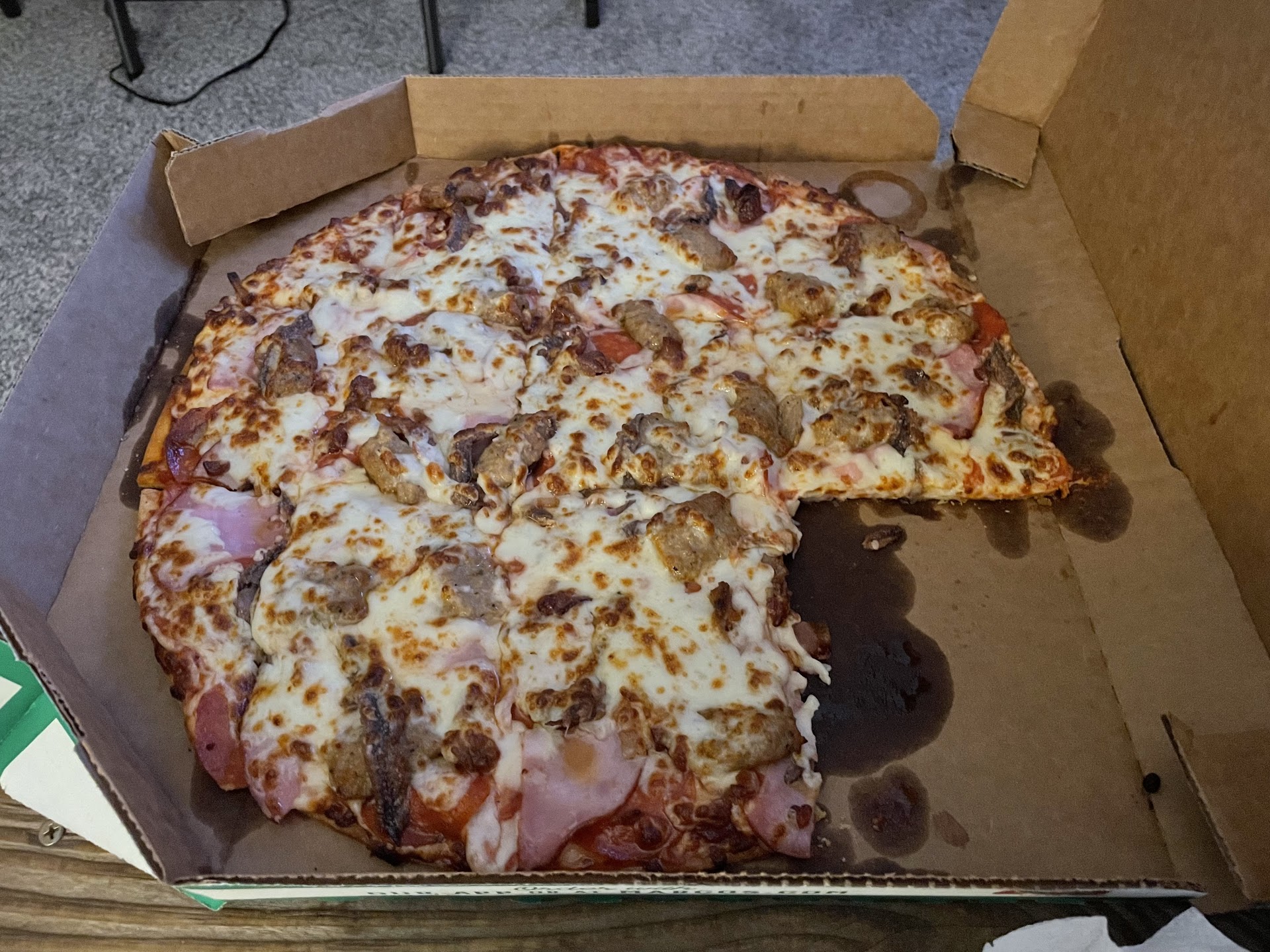 Read moreThe pizza, wings and cheesy bread was good. The women who helped me was really sweet. The manager was dealing apparently dealing with an employee issue. He me stand at the counter for about 2 minutes as he talked to the employee about what is apparently poor work habits. Even commented how I had been standing there for 2 minutes and no one had helped me and that was wrong. However, he did not move to assist me and I guess he was too stupid to realize I could hear everything he said. The employee appeared to be a teenager worker. Other than that all was good. The food was good. The staff that assisted were excellent. I will be ordering again...and hopefully the teenager will get his...