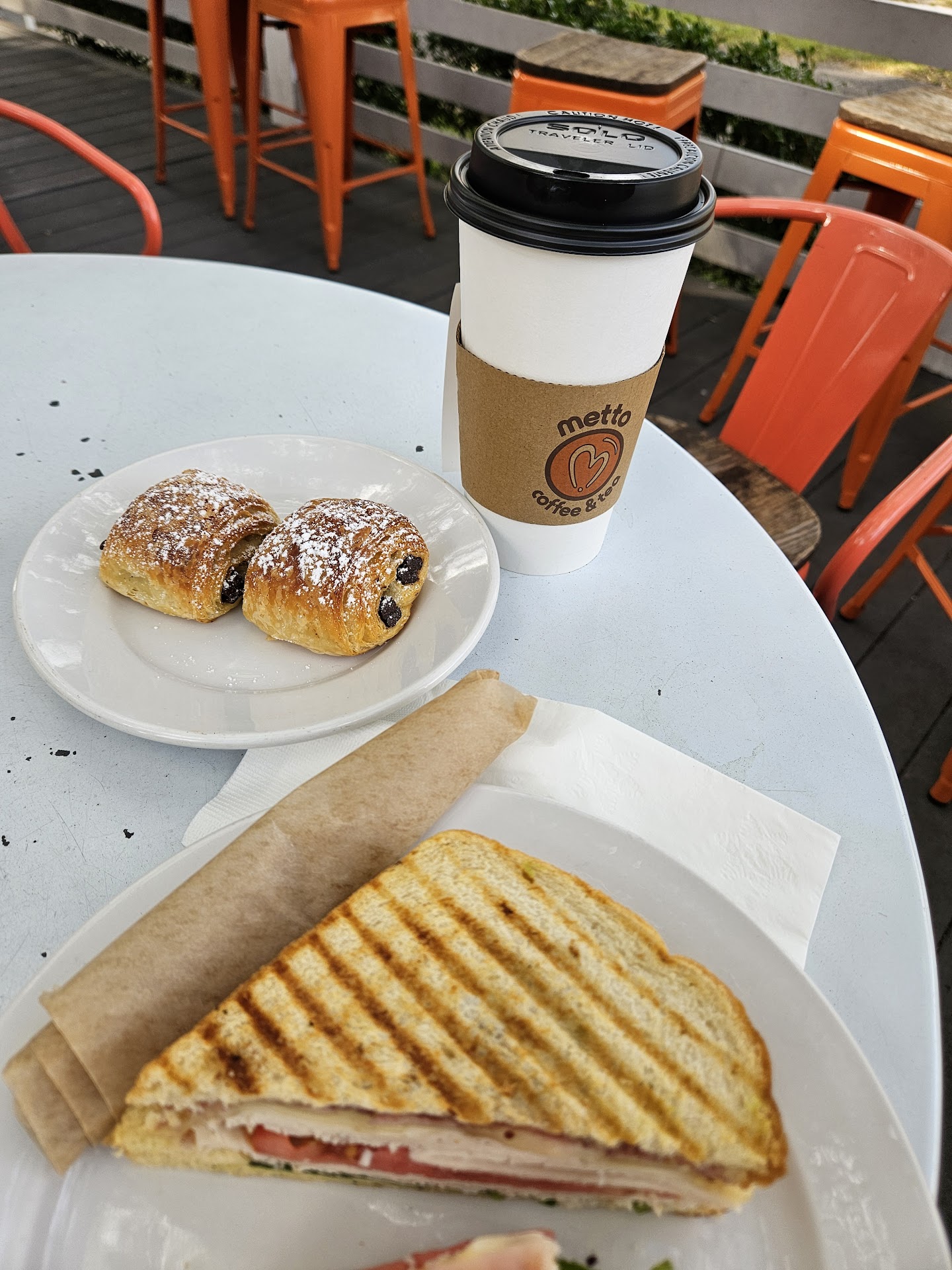 Read moreI used to LOVE Metto, as it is super close to my house and has chai lattes that are equal to, if not better than Collective Coffee's. I also love double-stamp Mondays and earning free coffee! Oohh, having a drive-thru is great too! (Although I've gotten stuck on the line because an out of service sign was on the machine. It would've been nice if a warning was poated before guests drive into the lane.) Unfortunately, the last 2 times I was there - the service was really slow and my order was wrong. I always get egg and cheese on an everything bagel (better get there early, cause they've run out multiple times) and a chai latte. I've received (in the drive-thru, therefore not realizing my order was wrong until I'd driven elsewhere) a bacon and egg croissant, as well as a turkey and cheese bagel before, which was not what I ordered. The ginger latte that was mistakenly made once was also not a pleasant surprise. I really, really want to love Metto because of its convenience and my positive experiences there in the past, but when I start having consistently disappointing meals, it's time to go elsewhere. If you do go, I recommend ordering inside (and staying to dine on the cute, little patio). They may have improved recently, which I hope...