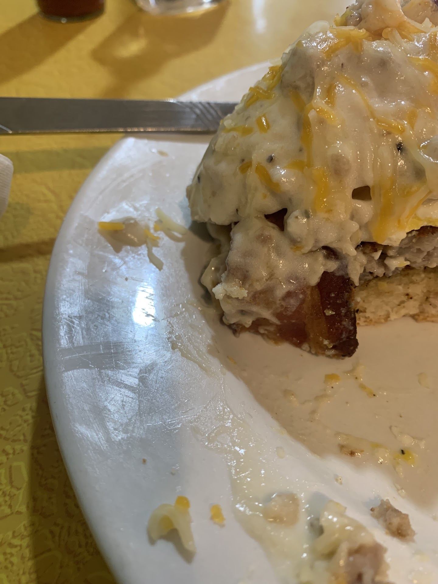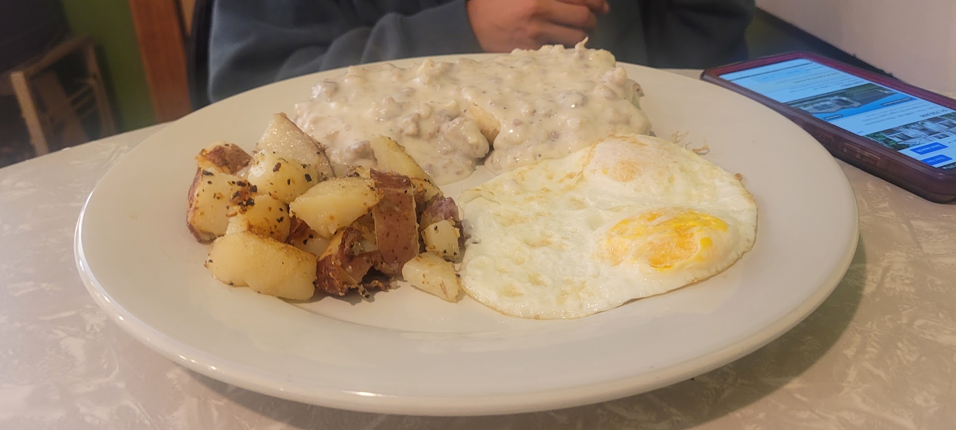 My food came out on a dirty plate, greasy with fingerprints and a hair. I have a dog so I probably eat tons of it, I just swept the hair off and ate. The food was amazing. Everything was clearly home made, the biscuits especially were moist and buttery. The gravy was perfectly seasoned, and the sausage was generously portioned hand formed patties.