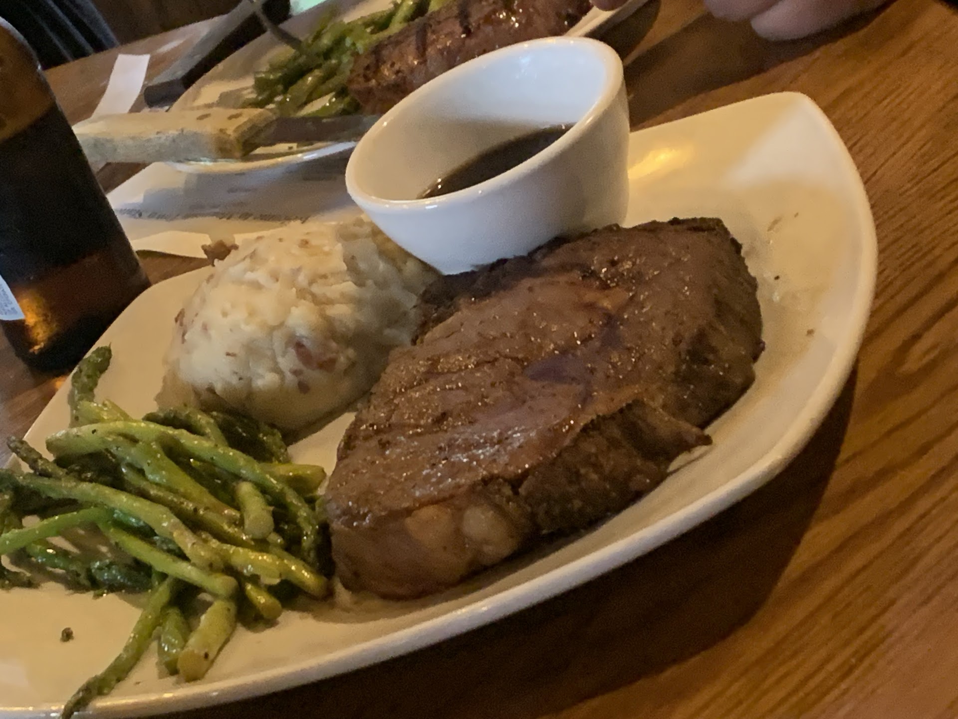 Would like to give it more of a good review. Great atmosphere generally speaking. Had been previously and was ok. Today's visit left me in awe, and with an empty stomach. We had 11 in our group. Tried to make reservations a week ago and were told first come first serve. We get there today and are immediately asked if we had a reservation. Most of the food in our group was either ok or good. The big exception was the steaks, which are the priciest items on the menu, both ribeyes were cut way to thin, salty to the point of inedible as well as over cooked. 5 out of 11 meals, 2 ribeyes 2 sirloin, and a fillet mignon, none worth the price. The salmon was good as well as most of the appetizers such as the coco shrimp, the cheese bread, the frickles and the artichoke dip, however the scotch eggs were a huge dissapointment (Almost but not quite as bad as the steaks). A scotch egg should have a runny yolk and be served whole. Not a hard booled egg then cut up into quarters cold. Overall between cramming 11 of us into a 6 person booth after a 50 minute wait, then providing a meal that was at best 50% ok, our meal was not a pleasure. I would like to go back but it will be a while before we try again since our overall price was near $350 with two rounds of drinks, it felt like more of a ripoff than the meal we intended to celebrate my sisters achievement of a Masters Degree. Edited for the owner who responded: Of course I informed the manager on duty, who was very helpful and had me fill out a comment card. The complexities aside from the shutdown, a steak is a steak and while can be difficult for new cooks to learn how to cook, seasoning one should be as simple as a taste test of the product. As a certified chef I have worked in numerous locations that have served my own recipe of scotch eggs as well as several places I have been to eat in years past that did them well. It is a soft boiled egg, not a hard boiled egg, there are are ways to prep it so it is dropped in the fryer to order, and keep it fresh and hot when it hits the table. More attention to prep than to order but it is manageable and creates a better texture and final product, the best part of this appetizer, that is starting to reappear in the culinary world, is when you cut into it and the lightly cooked yolk breaks out for you to dip each bite in for extra richness. I know you are all doing your best given the circumstances and the losses a restaurant faces during the pandemic, this was just a review of the situation, and the experience we had, not an attempt to undermine the attention and time put into your restaurant. Hopefully things get better for you and your crew as things pick back up, as I stated the atmosphere is generally amazing and the last couple of times we were there...