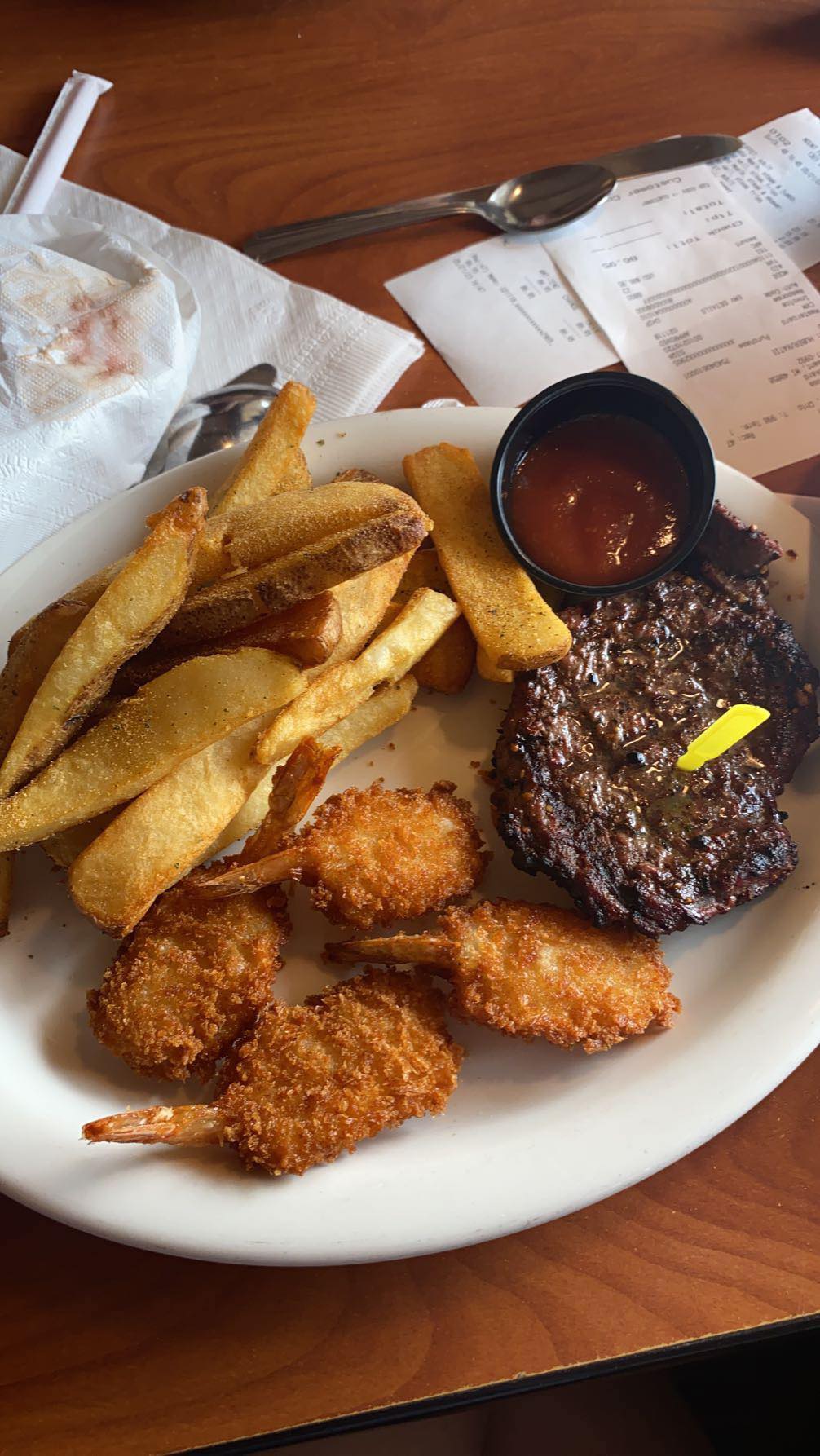 Read moreNow to start this, i went in thinking it was like the old ponderosa inside and was sadly mistaken. The place wasnât super busy (7pm) and the cashier belched within 30 seconds of taking our order, he then made chitchat about how much he didnât want to be there. We sat ourselves down on the right, by the salad bar. Now I could see the place didnât look well staffed, but our server came to our table twice in our visit and only refilled 2/5 drinks we had empty through our entire meal. The buffet was limited to mainly chicken/fish, meatloaf and sides. The mashed potatoes tasted like they were made with a musty dish water, the âfriedâ chicken was raw and full of juice and bright red blood. and the most edible item, the wings, were 90% breading and skin. The plates had food residue stuck on them (even the ones just placed) and the serving utensils under the headlamps were too hot to touch limiting the options even more! Highly disappointing when you remember what ponderosa used to be. The servers for other tables and ours I could overhear complaining about management not doing this and that, yet here sat half a table of plates stacked to the side that never got glanced at. Overall the quality was awful, the service was awful, the atmosphere wasnât bad, but putting everything together made me feel like I spent $79 on the worst dining experience, except I didnât intend too. I wanted to enjoy my dinner and enjoy a place that held so many memories from my life growing up. Too bad this place isnât that anymore. Itâs not even trying to front like a decent place. Just all around disappointing and overpriced for what few...