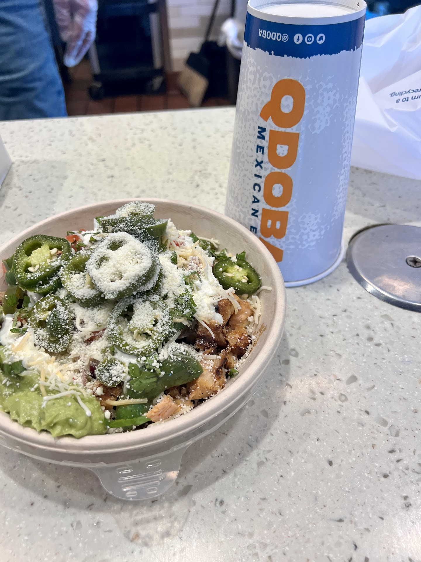 Read moreI'm not going back to this Qdoba anymore. Most times I go, you're waiting whether you order online or in person because the establishment doesn't know how to work online orders and in store orders. My friend and I stood in line and when we finally get up to place our order, we're stopped and told to hang on so she could fill several online orders. These orders ALL used white rice, so when she's done, she tells us oh, we're out of white rice. So the several online orders were filled and now we don't get our lunch because you're now out of white rice. She didn't know how long it was going to take? Ok, so you're in the middle of lunch and are out of a common staple. This place just doesn't know how to manage things well at all. I was ready to give up on the place last year and was told to try again, it would be better. Nope. I will just travel the extra distance to chipolte. My online order is always ready and when I walk in to place an order, they don't tell me to hang on so they can handle online orders and make me stand there and wait as the line continues backup...