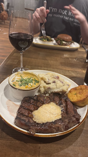 I ordered the ribeye cooked at a medium temperature and it was perfectly cooked. The butter was seasoned butter with what I think was paprika and bit of chipotle that made the steak delicious. Steak was damn near perfect. Priced at 40 dollars.