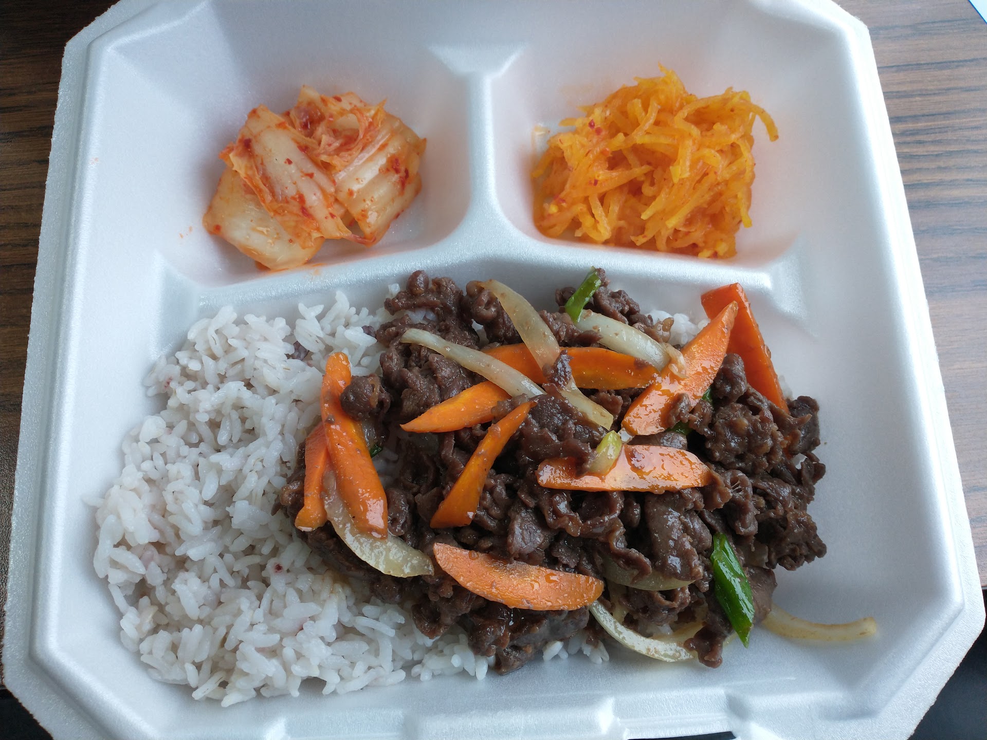 Read moreI've wanted to try Korean for a while and I finally went. I don't think I could eat anywhere else again. I got the Kimchi Pancake, Jae-Yok Bokk-eum, and Kimchi-Bokk-eumbap with Sausage. Each main dish came with two kimchi's: the normal napa cabbage and sweet radish. The nappa cabbage kimchi was PHENOMINAL!! I ate it with every bite and ate the juice with rice. The kimchi pancake was the perfect texture and perfectly cooked. The fried rice was yummy and the Jae-Yok Bokk-eum was good but I will ask for more spice next time, personally because I like spice.