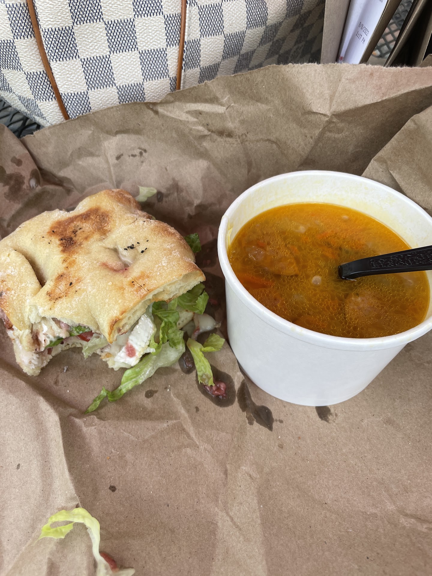Read moreSo after reading up on the Square Onion, my son and I headed over for lunch today. The only aspect that surprised me was that there was no indoor seating but that was not an issue for us as there was plenty of outdoor seating and the weather was cooperating. The gentleman that took our order at the window was very nice, I got the half Meredith and half andouille and white bean soup, my son got the goose. The food came out within minutes after ordering and everything was absolutely delicious! We have high standards when it comes to sandwiches and my son said it was the best one he’s had in this area. They also serve several different types of casseroles that I will go back to investigate further. Do not pass on the Square Onion, its a creative concept in a pretty location...