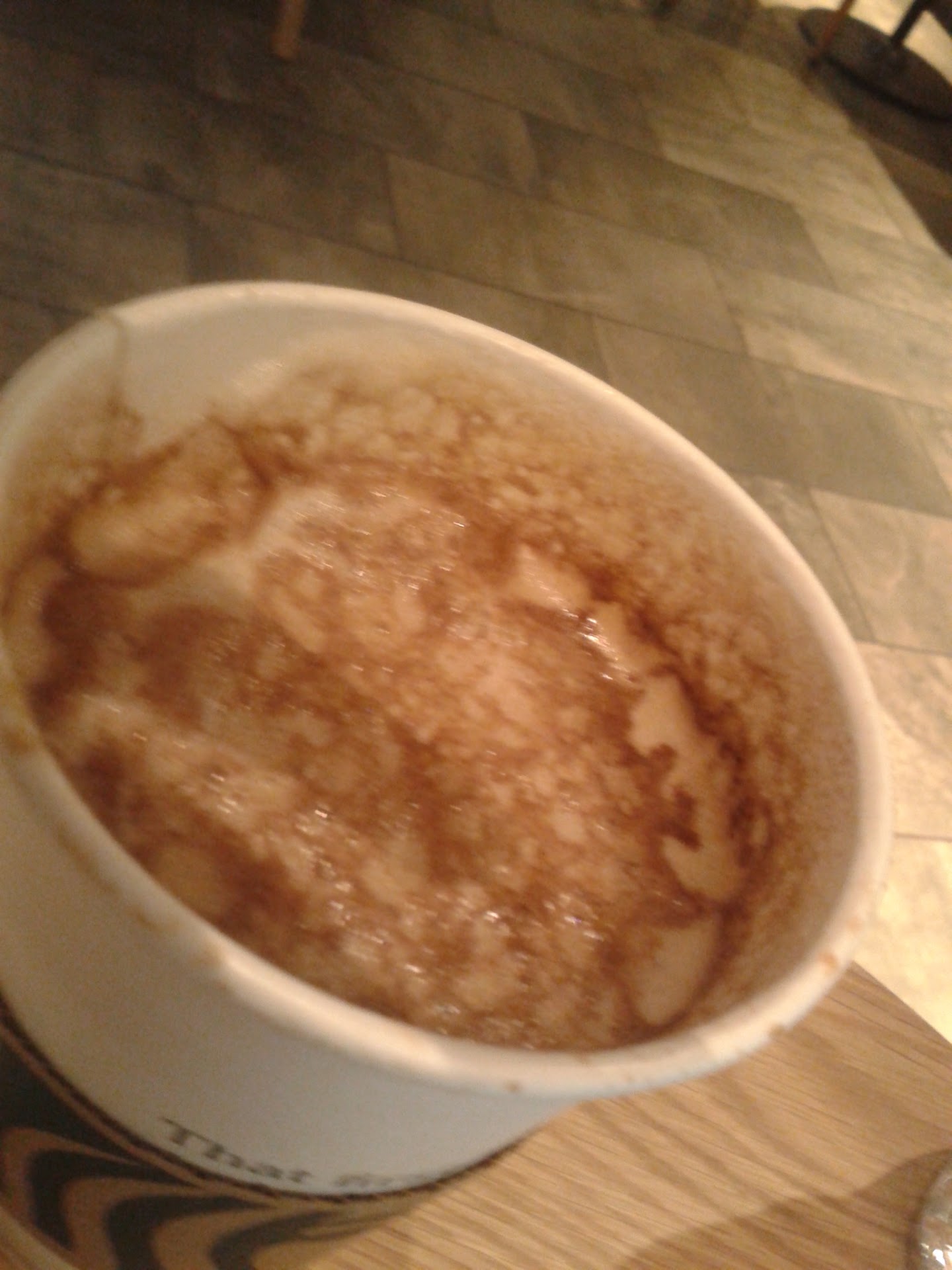 Let's start with one HUGE infuriating issue that repeatedly occurs. When you charge $5 for a cup of lukewarm milk with a few pumps of espresso the cup should at least always be FULL! [see pictures] Here are pictures on two separate visits, of a Venti(!) and Grande before I had taken a single sip. The Venti is literally 3/4 full at best. In both cases I'm apparently paying for FOAM and AIR. And I know as soon as I pick up my cup I've been ripped off because I can feel how light it is every time. Why bother with sizes when you are putting a Grande amount of "coffee" in a Venti cup? And why bother concealing it under a lid when with this amount of space you have NO worries of spillage (and also its never hot enough to burn anyone, anyway). Now don't get me wrong, I still love SB. The staff here is always friendly and the Wi-Fi is very helpful. Also, this brand new SB is beautiful once inside with a lot of seating and a great long meeting table in back alcove that most people haven't caught onto yet, so you can usually get work done in peace (although the raw wooden chairs throughout the whole store are absolute butt-numbers). So I'd just implore SB managers at ALL stores to please train staff to CONSISTENTLY(!) keep the foam and/or whipped cream to about 1/4 inch instead of giving paying customers cups of air! Otherwise they just may start going to Dunkin' and getting 5 cups for the price of ONE of...