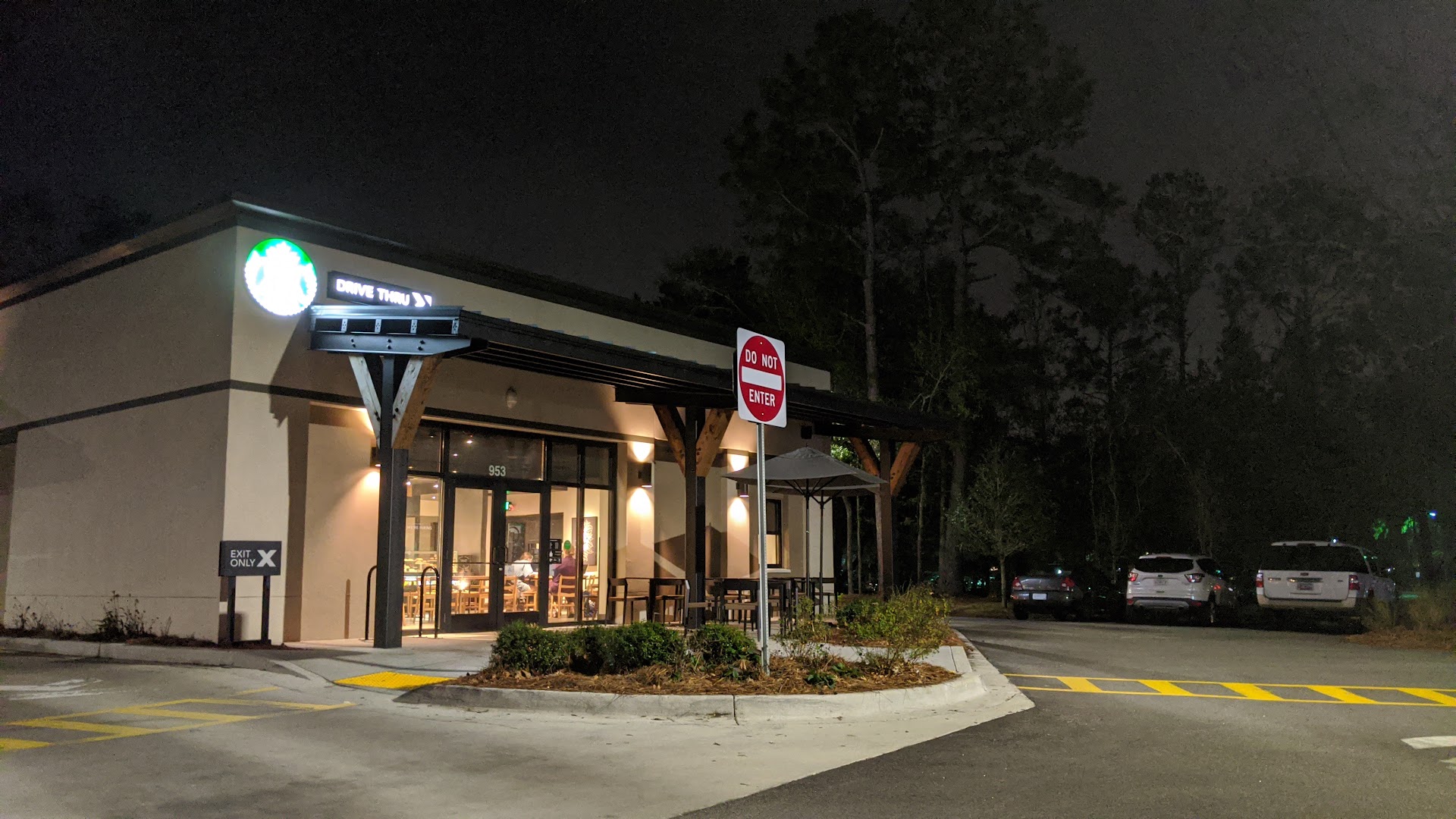 Read moreIf I could rate the elements of this Starbucks separately, the staff would get standard marks for a job well done. The location itself though is an absolute nightmare. One way driving around a Starbucks isn't unusual but the propertt and parking lot is so cramped that when the drive thru line wraps around the building, it blocks any other traffic into the lot from the main entrance. There is maybe 15-20 parking spots for the entire building with no nearby lots to take the overflow like at the old location near Harris teeter. If you're just grabbing an online order, you get to decide between waiting 20+ minutes for the drive thru window or illegally parking to dash in and grab it (that's what I saw most and in sorry to admit my tactic as well) unless there's a miracle and you manage to get a parking spot.