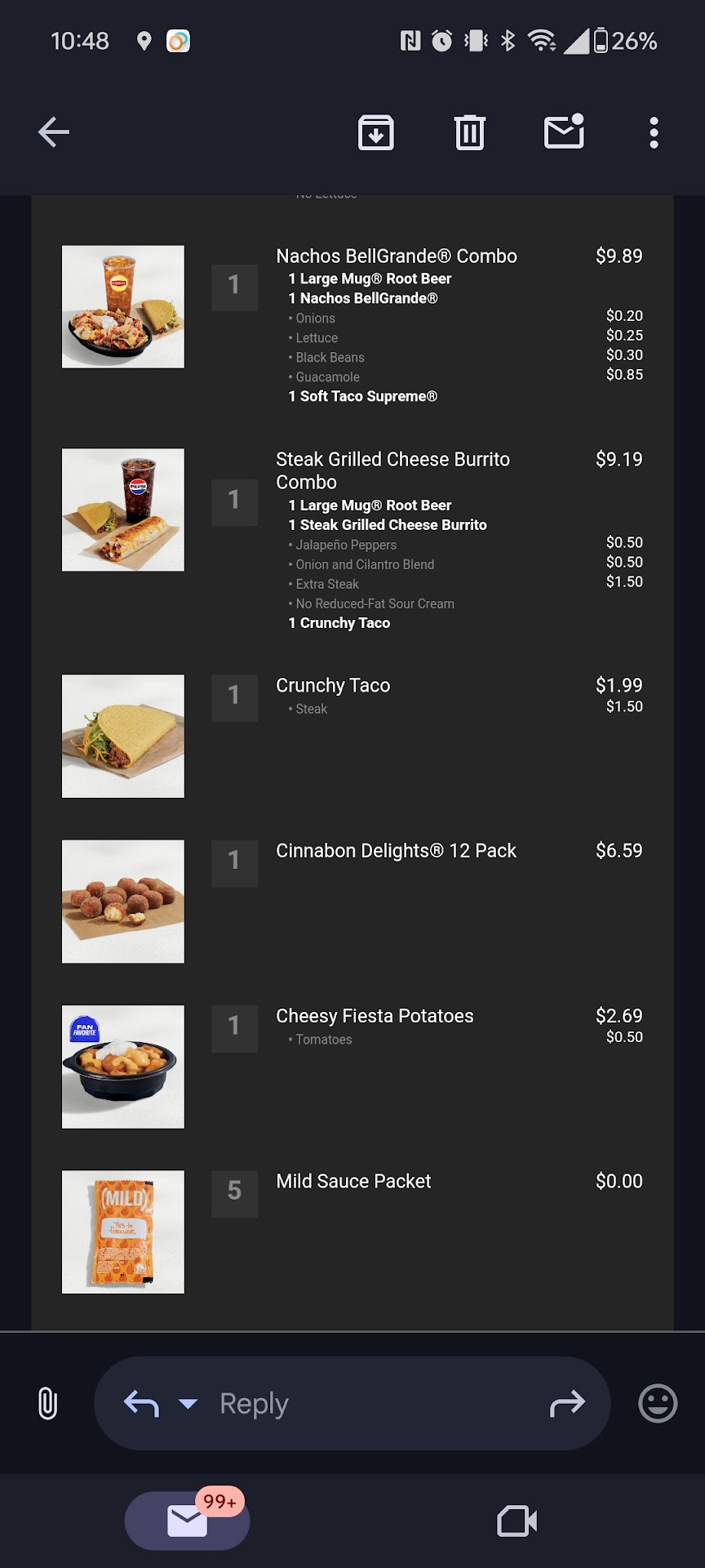Spent 27$ on 2 identical combos number 6 with soft tacos one combo beef one combo chicken add nacho cheese to both combos A 7 layer burrito and a chicken quesadilla Needless to say the employee taking my order seemed like he was just trying to get out of working and was very lethargic from what is unknown but I repeated everything in the order back to him and asked if he had it correct and he assured me he did We proceeded through the drive through to hear him complain that Taco Bell’s policy was that there is a zero tolerance for orders over 20$ after 10pm ... Taco Bell doesn’t close till 12 ? 3 possible arguments could be made here using logic and several years of experience in fast food but ima just stick with the first one because it is the first impression that was given the crew is lazy and management is slack they do not appreciate the fundamentals of capitalism because the more money we spend at this restraunt the more money that is made not only keeping their ability to have a job there but also providing more capital to hire another employee to work with such a heavy work load speaking sarcastically nor do they take pride in their job and the fact that people work hard for their money just as you would think they do The chicken and beef chalupas either had little to no nacho cheese on them after we payed extra for it we got hard tacos instead of soft and the quesadilla wasn’t even cut into slices which really didn’t matter because of the poor quality of food most of this was thrown in the trash due to the fact they don’t know how to answer a phone to review complaints and fix the issue I asked the employee if he had confirmed everything correctly and he stated that he had but obviously he didn’t and everything was either soggy cold or sub par Very disappointed with the last meal I will ever eat from this establishment and certainly discourage any other hard working Americans to waste money on food not fit for my dog You guys really need to regroup and re consider what kind of employees you keep aswell as the quality of food you serve with that being said im going to call corporate fill out online surveys and pursue every avenue possible for my refund...