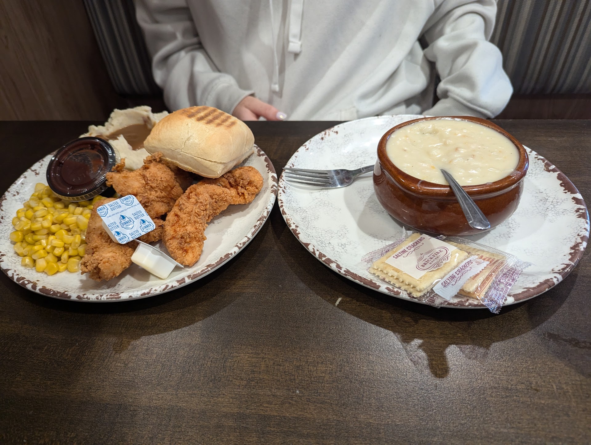 The food was hot when supposed to be and cool when supposed to be also plentiful. They had all the usuals eggs, bacon, sausage, biscuits and gravy, chicken, waffles, pancakes and omlets. They also has fish, cornbread, mashed potatoes, pot roast, bakery, desserts and more that I can not remember at this time. Of course they have coffee, tea, juice, soda and water.