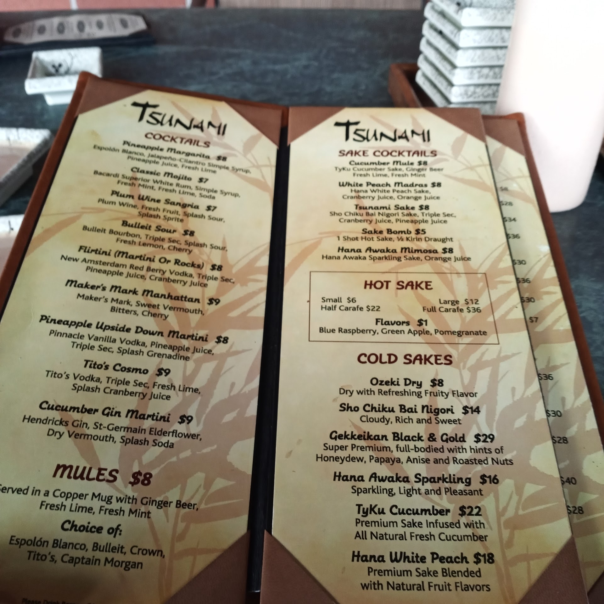 Read moreMy family and I have been going to Tsunami for a while but due to recent bad experiences we will not be returning. In the past the waiters have been amazing and very knowledgeable about their menus. Food came out in a timely manner and it was our go to spot. Recently, the staff has changed and unfortunately their English is rather low. We have gone twice in the last two months and both times our orders have been completely wrong. Even our drinks came out wrong. I ordered sprite and got diet coke. My husband ordered sweet tea and got water. We went just last night to give it one more try and for a Friday at 7pm we were one of two couples that were eating. It took our waitress 15 minutes to even take our drink order and from there it just went down hill. Our orders were wrong again and mind you we don’t order anything special it’s directly off the menu. It took well over an hour to even get our food so at that point we just ate it bc we were so hungry. We didn’t see our waitress again for what seemed like another hour. When she did arrive there was no refills of drinks or the simple ask how everything was or if we needed anything. She just said “check?” This establishment use to be so good. Sad that it has gone in this direction. I give it another few months and it will be...