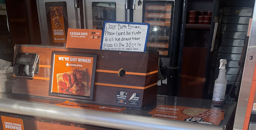 Read moreI thought this sign was a bit unprofessional I happen to be a dasher. I remember going to this establishment previously to pick up and order that did not have a code. I witnessed them hand everyone their order as I stood and waited patiently. Finally my order came up instead of the cashier handing me the pizza knowing I was dashing she put it in that heating thing that requires a code that I did not have. She wasted at least 5 minutes of my time before she finally opened it and handed me the customers order. I went there again yesterday to pick up one pizza half cheese half pepperoni. I paid at 4:12p.m. when I left it was 4:44p.m. I’m not sure if they’re racist or what but the establishment is employed by Hispanics I watched all Hispanics walk in after me and are taken care of. I was the only black person in there and had to wait way too long for a pizza that was done but they...