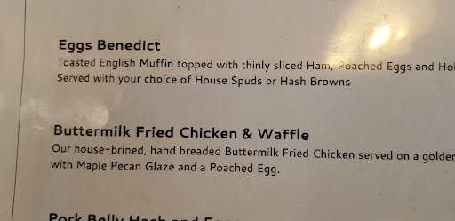 Read moreSmall, unassuming cafe on the ground floor of the McCloud Mercantile. I've eaten here a few times in the past but its been a while and I feel like the menu is different. I just ate the best breakfast I've had in a very long time! Chicken and Waffle. O. M. G. The chicken is brined then dipped in an amazing batter and deep fried - and so crispy on the outside and tender on the inside that you can cut it with a fork. The waffle was perfection, and the whole thing has a light drizzle of maple syrup and toasted pecans, then a poached egg right on top. I ate every crumb. My friend had the biscuits and gravy breakfast which she said was amazing also and certainly looked great- with very generous portions. The gravy had fresh herbs in it which gave it a very unique flavor, and the potatoes were crispy on the outside and perfect in the center (she had the spuds, not hashbrowns). We washed it all down with a good cuppa joe and a glass of the AMAZING McCloud ice water. Very well done White...