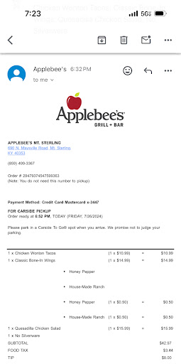 sigh. Applebee's. If you love going places that are really inconsistent then you'll love it here. I went here a few times a year or so ago and it was ok. Then the next few times it was terrible so I stopped going. Last week I reluctantly went back because my date and I were looking for a place to go after the movies. We went to Cattleman's the week before, so we wanted to go somewhere different. There aren't many options in Mount Sterling at 9:30 night.