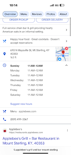 Read moreWell I had complety stopped going to this particular Applebee's. I decided after long consideration I decided to give it one more chance and this experience was a little better than the last. I visited here two years ago and haven't been back till now. The last experience, I was walking into the place and it was pretty rowdy. It was around 10 or 11pm and the bar was full of people. I found a seat and the place was all singing along with a song that was playing so I decided to join in. I asked the bartender for a beer and I was told thay I couldn't get a beer because I was singing, along with the rest of the customers. I was told that I was already drinking too much and that I was cut off from any alcohol. My friend and I had just walked in and we had been working late and had not drank anything at that time. We tried to explain that we hadn't drank a drop that day. We were humiliated and turned away. We both said we'd never be back and hadn't. I understand that its is up to the bartender weather you get serviced alcohol or not and ive never had any problem with them doing their job, but being cut off this night was something personal towards my friend or myself. I went this weekend and decided to give them another chance. This experience was a lot better than the last but I entered and took a seat at the bar. I sat there probably 15 to 20 minutes and had already decided to leave when I was offered service. I stayed and I was served beer and food. After not being noticed for roughly 20 minutes the service was actually pretty good. The wings I ordered wasn't too bad either so I gave the a better rating than I was actually thinking. I have turned my party away from this place for two years now and have encouraged others to do the same. Not sure that I'll ever be back but they did seem to have done a little better with their...