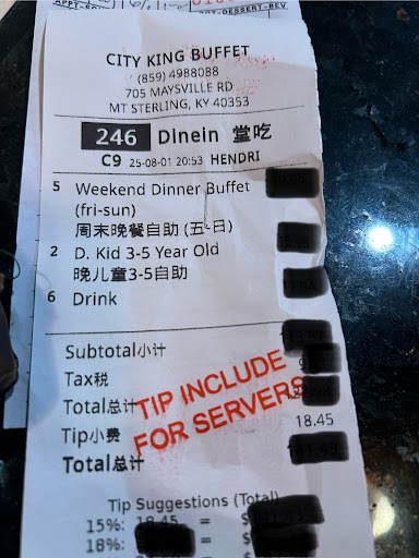 Read moreI only gave one star because it is required. As I read the reviews here, I am wondering the same thing I wondered last night, as I sat almost elbow to elbow with overweight gluttons stuffing their faces with some of the most disgusting, overcooked, tasteless, overpriced food I have ever encountered. The last time my family ate at City King, was about 3 years ago, before it burned, it was greasy and disgusting then, we decided we would never return. I guess with a nice new building, we were under thinking, and took a chance on it last night. My husband could not even chew the ribs, my kids attempted to eat their chicken on a stick, it was so tough they could not chew it. My youngest son likes the cinnamon bread roll things...they were so hard, that we could not even break them. The buffet line was dirty, riddle with old food and finger prints. I could smell the bacteria already. The waitresses were rude. There is no "sushi" in this restaurant, it is all fake crab meat. The closest it gets to sushi, is it is at least wrapped with seaweed paper. I do not understand the positive reviews, I came to a conclusion a long time ago that in this region, people will eat most any crap, and call it good. I know all "Chinese" restaurants around here are NOT authentic Chinese foods, but the one in Morehead is at least good, clean, and cooked perfectly. My husband spent 68 dollars for 2 adults and 3 children--we only made one trip to the buffet. We should have refused to pay, but instead learned a lesson, and I vowed to write as many reviews as possible. Fool us once, shame on you, fool us twice---well...lesson learned. Save your money folks, and your...