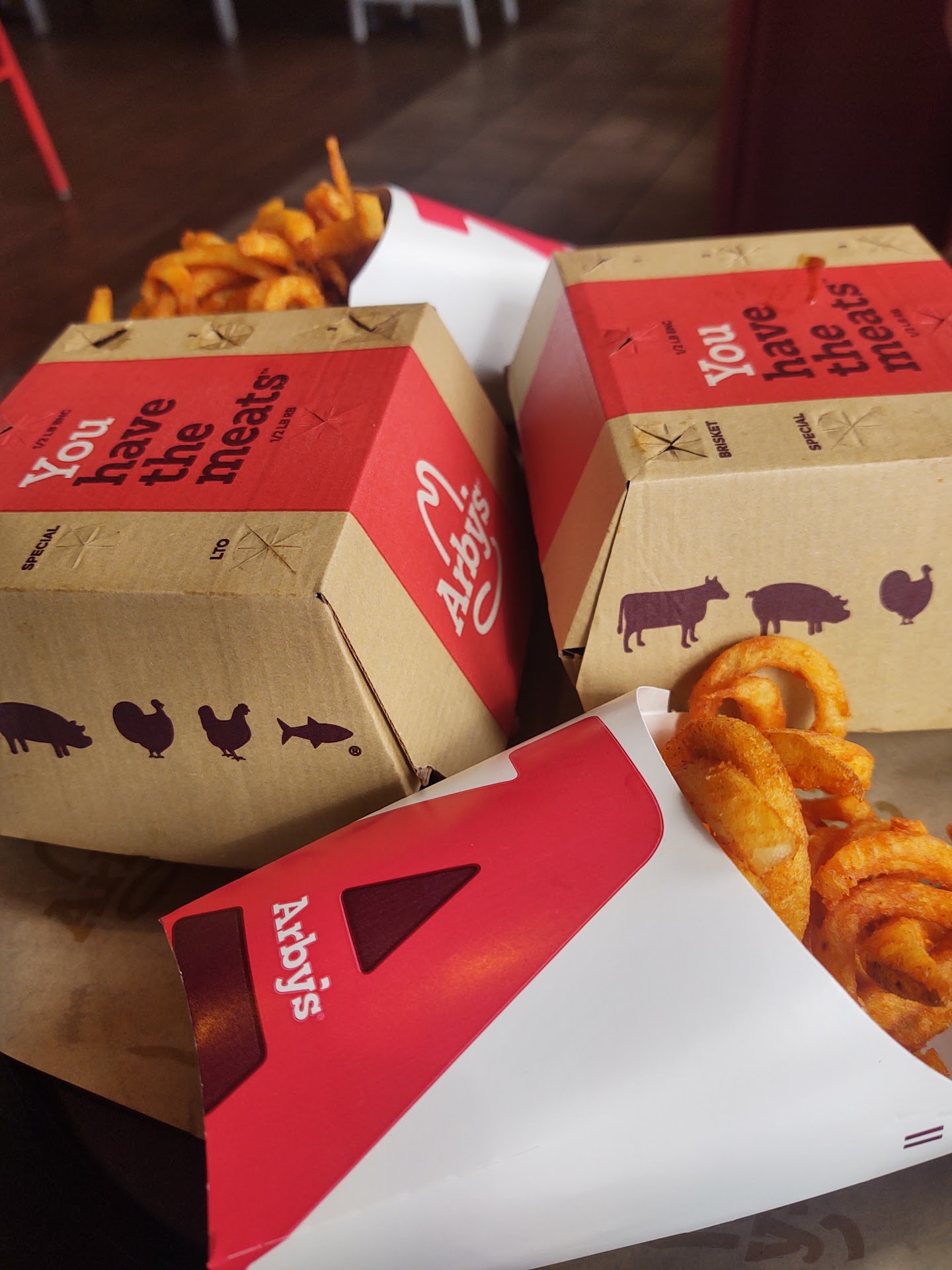 Read moreOur 3rd bad experience in a row dining in. The restaurant is clean besides the Arby's sauce/ketchup containers. The ketchup was more red water than ketchup and they didn't care at all when told them about the problem. So no ketchup on that visit. Also the restrooms are absolutely horrible smelling everytime we've visited. Just got the new pulled pork sandwich and the 1 tablespoon of meat was 100% refrigerator cold. My wife's sandwich had the top bun broken in half, and the bottom bun was twice as thick as usual. All this after yet again about a 20min wait to get our food with nobody in the drive through and only 1 other party of 3 waiting and pissed to get their food to go. The mgr/drive-through order person was sitting out in dinning area for the second visit in a row being extremely loud. This time, 5 other people who seemed to be off-duty employees were with her coming in to get what looked to be free food. The door to the kitchen opened and SLAMMED SHUT over 30 times easily, for our 30 minutes dinner visit. That also happens every visit because the door is obviously broken and nobody cares enough to fix it, or at least pull it closed gently. This place needs an...