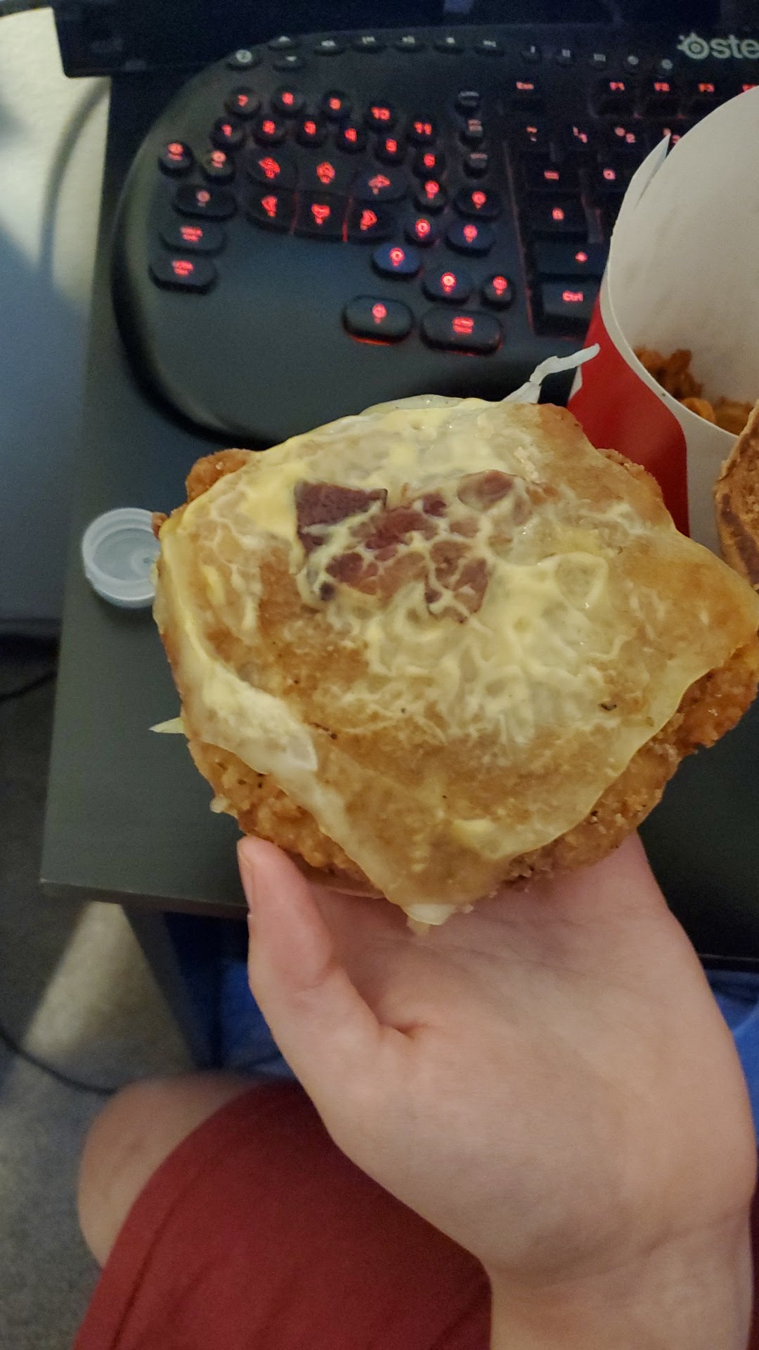 while I prepared for the inevitable disappointment of yet another sandwich, I hoped, nay, I prayed that this would be the one I enjoyed..... I opened the box, to see a beautifully red bun, with flecks of a deeper, more baleful red. The cheese was white with an ominous speckle of deep crimson.....the jalapenos, deep as the green of an emerald shone brightly against the crimson of the sauce.