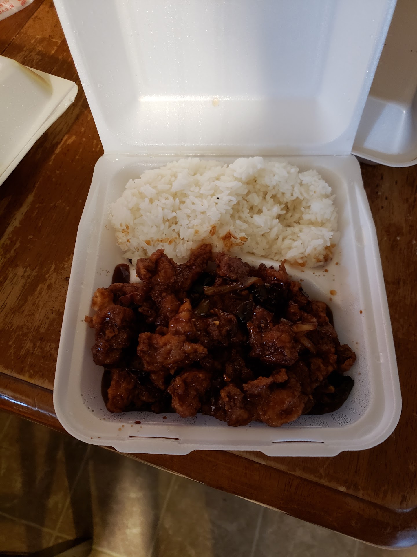 My bf ordered Mongolian beef and thought it was going to look like it does in the picture they have (lots of onion and chili pepper). Unfortunately, it didn't look like he had hoped. It was missing more pepper. The soy sauce given with the meal was not very good either (seemed watered down).