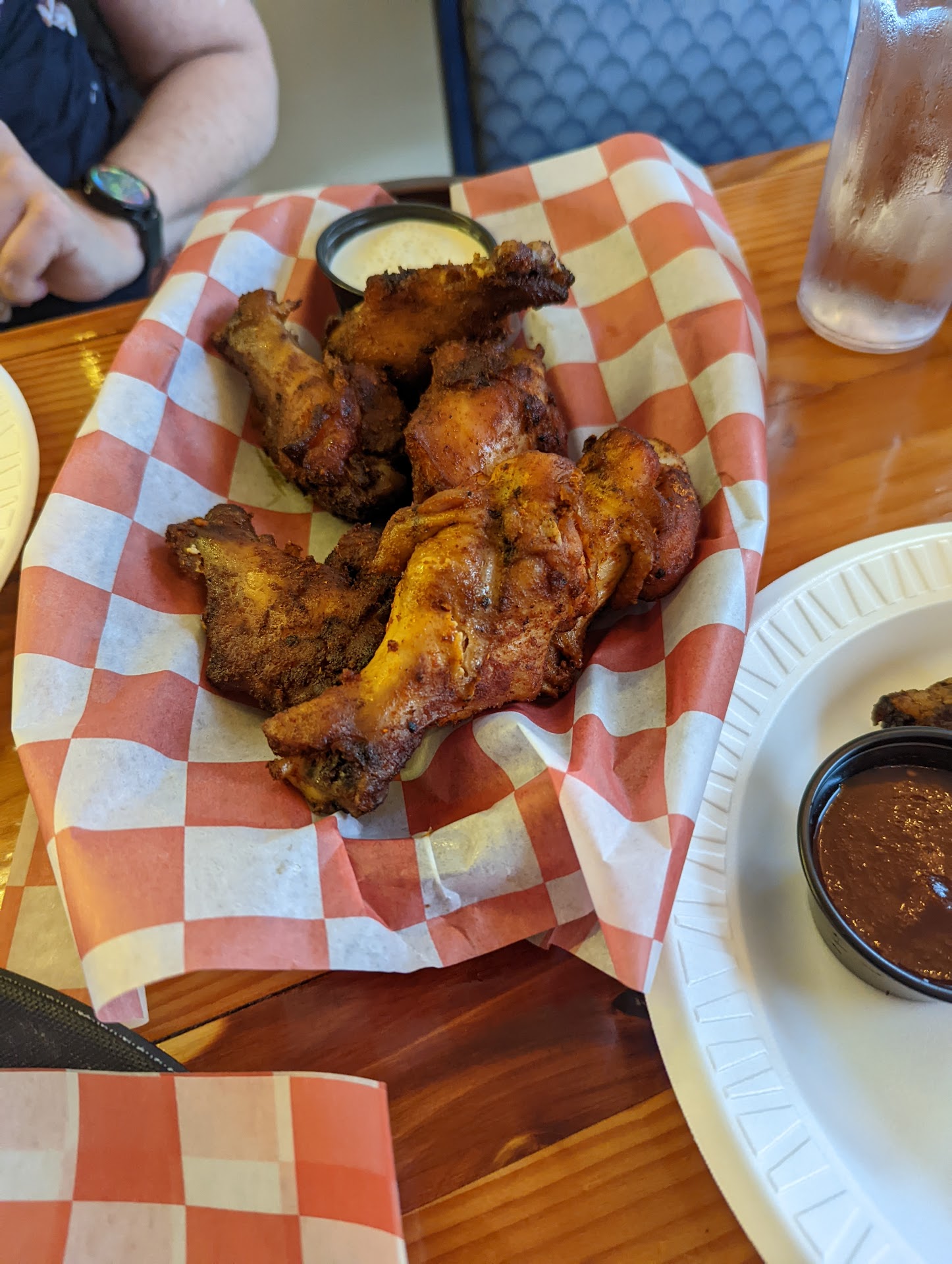 Read moreWe went to Bigs around 7 pm on a Weds evening. We got the Texas poppers to start. We got the 2 meat platter with brisket and burnt ends and sides of beans, cornbread, and coleslaw. We added on their special which was jumbo wings. We ordered water and a beer we hadn't tried before. So, to start, the experience was very hit and miss. I would not readily recommend this place if there are other options available. The Texas poppers are regular poppers with a piece of brisket on top wrapped in bacon. They were good, however, they were not freshly made. They appeared to have been sitting around for a bit. This was a theme for the entire meal. Nothing appeared to be freshly made. The brisket and the burnt ends were decent. Nothing special but ok. The coleslaw was terrible, to the point we couldn't eat it. It was dry with no moisture whatsoever. The beans were ok, but appeared to be canned that had been beefed up just a bit. The cornbread was probably the best of the 3 sides. It had a good flavor but was almost too dry but not quite. The jumbo wings were not very good with very little flavor and they had been overcooked. The ranch they brought with the wings was mixed with a vinegar which was a bit off-putting. The beer, hacked up lemon Haze was good. They allowed us to sample before we got a pint. The service was really good and the ladies were very friendly. They made sure we were taken care of and would recommend their hospitality. Overall, it was a mediocre experience with the food and we would probably not go back since we have better options closer to us. It is an ok place with decent options. This has been my experience the last few times I have been to this place. Their bbq pie was really good from one of my...