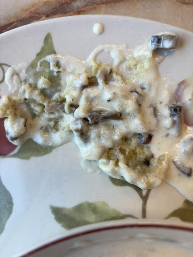 I have been coming to this establishment for years. Usually I love it. I went today and it's an entirely different place almost. The staff was not inviting and seemed inconvenienced that we had come for lunch during lunch. There were only 2 tables seated during this time so it wasn't a rush or anything. We sat in the back in this beat up booth that overlooks the overflowing grease bin, barbwire fenced in AC and random car doors. Truly a wild sight to see. The booth itself is a caution to sit in. Best to sit on the support beam or you will fall into the seat a few inches. I ordered a creamy mushroom soup. It came with these weird balls of flour in it. Im not sure if these were supposed to be dumplings or what, but I felt like someone added flour to thicken it and left it in clumps. It was very bland and a little sweet which was strange. My friend received a tomato and mozzarella panini, the thing was dripping wet