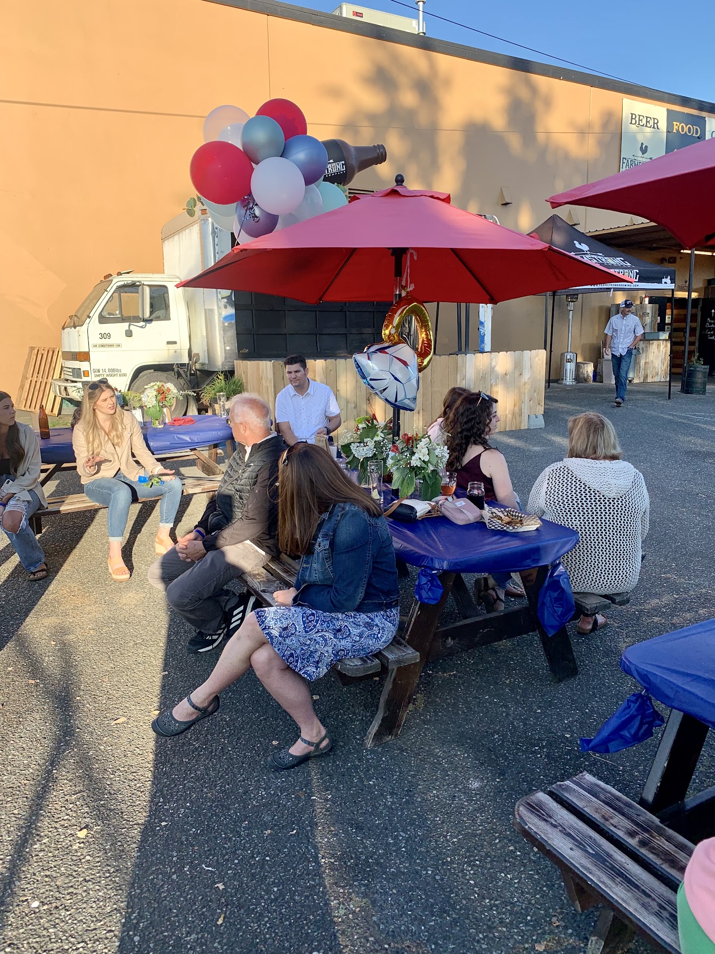 Read moreWe hosted a group after a wedding rehearsal dinner on 7/15/2021 and everyone at Farmstrong Brewing and Taproom was a complete pleasure to work with! Planning this from California was easy because of the clear communication about table sizes and what we could bring for decor and how to ensure that we paid for our guests mingling in an area that was also open to the public. Clay and his entire staff were incredible! It is clear that they are not only passionate about great beer and delicious food, but equally intent on giving people a terrific customer service experience! On the day of our event, we were able to get in prior to our reservation time to put table cloths on our reserved tables, floral arrangements, a banner and some balloons. The atmosphere on its own was fun and full of friendly people! We could probably write a book full of details about what we loved about the food and beer! A group of about 40 people all tried many varieties of beer and just about the entire menu and all guests raved about both! Despite being slightly short handed due to situations outside of staff control, our entire party got foodie worthy meals in a timely manner! That was impressive! The beer menu had something for everyone! Some of our guests are more cocktail drinkers. Other guests prefer wine. Every single person found something on the beer menu that they enjoyed! The selection is so extensive that there really is something for everyone. Anyone who is thinking of hosting an event at Farmstrong Brewing and Taproom shouldnât hesitate! Weâve hosted a lot of large events and coordination was stellar, pricing super reasonable, top notch service and 5 star food and drink! Thank you to Clay and the entire staff for making our...