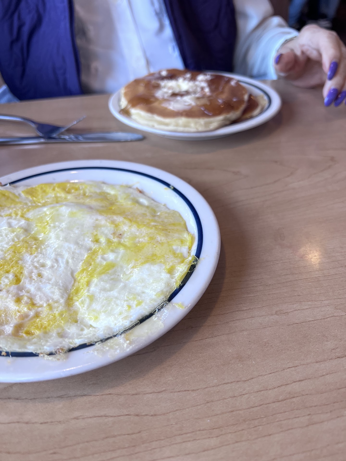 Read moreI've been to this Ihop twice, and I didn't like it both times. The first time they oversalted the fries. This time the unfriendly hostess not only didn't say hello, but immediately turned away from us and started looking for a seat; she sat us at a table with trash scattered around it and only cleaned it up after I complained; the chicken strips are not golden brown as on the menu, but fried until really brown (and yes, guys, cutting chicken strips on a concave plate with fries on it is very inconvenient); part of my order was served to me after dessert, when the main meal was over (they didn't include it in the bill as a compliment). What can I say, guys, you have a lot to strive for, and we will look for a friendlier place. It's a pity I didn't read the reviews beforehand. We've never had such troubles in our city.