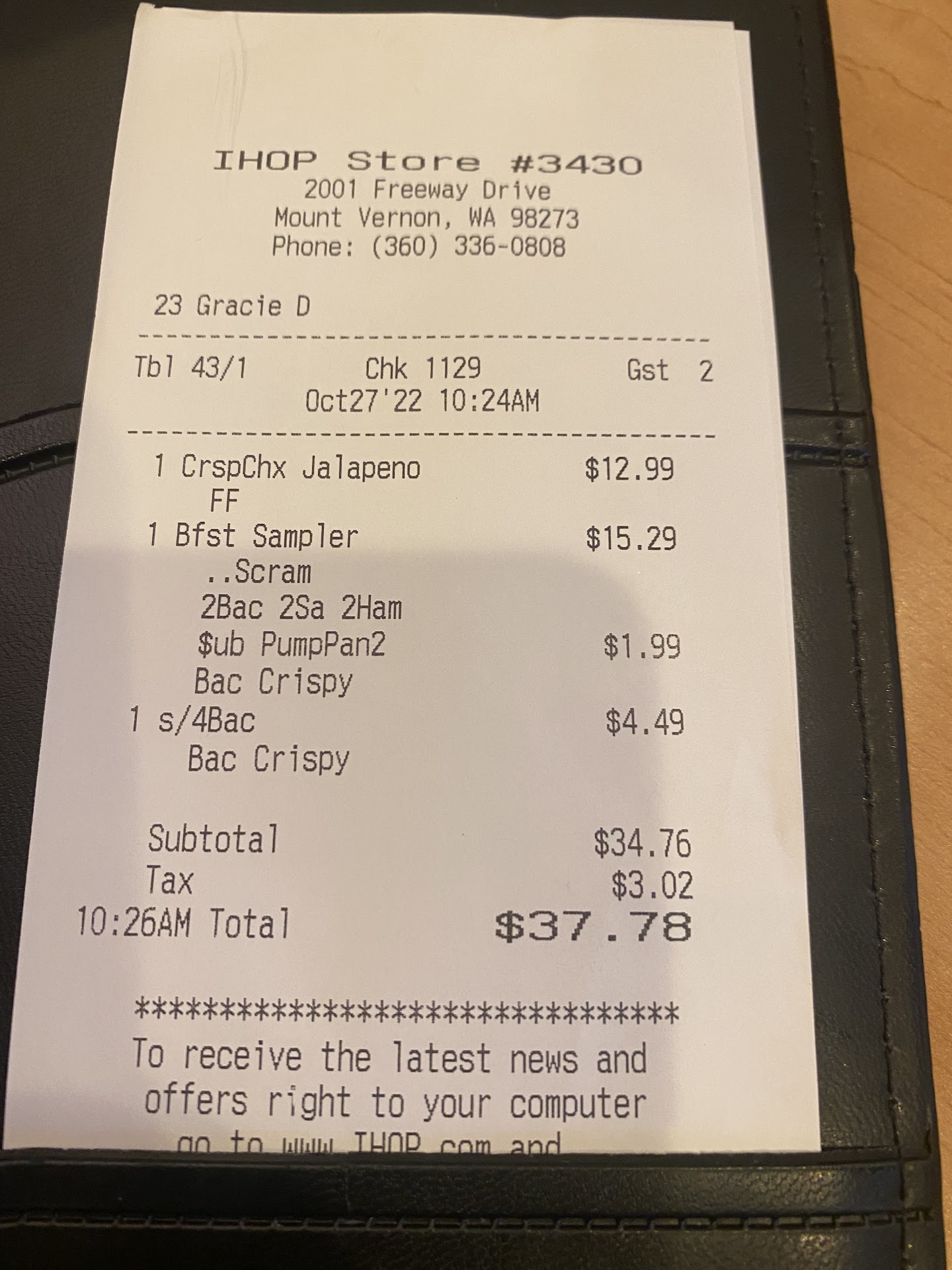 Read moreThe place we usually go to for breakfast in Mt. Vernon was closed last Saturday, and we were under a bit of time pressure, so we thought IHOP would be a good option to get some take out breakfast. We haven't eaten at IHOP in a long time but had been to this location before, so were not ready for what awaited us.
