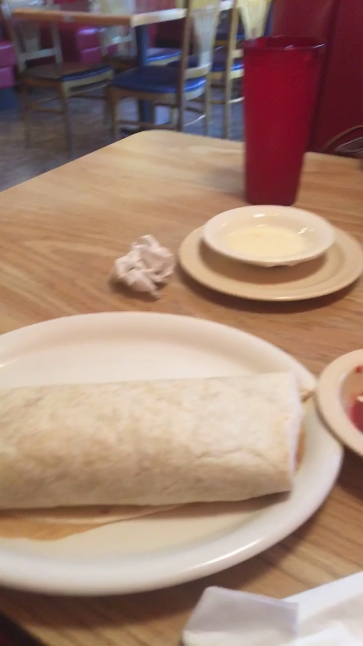 I always enjoy starting off with the queso and chips while my husband enjoys the Salsa. Then I always get the same thing whether lunch or dinner⦠The lunch #8 no beans all rice. My husband likes just about everything on the menu, so he tries something different every time. And on this visit, he ordered the āFreddy Burgerā. Where do you think they got the name Freddy Burger from???