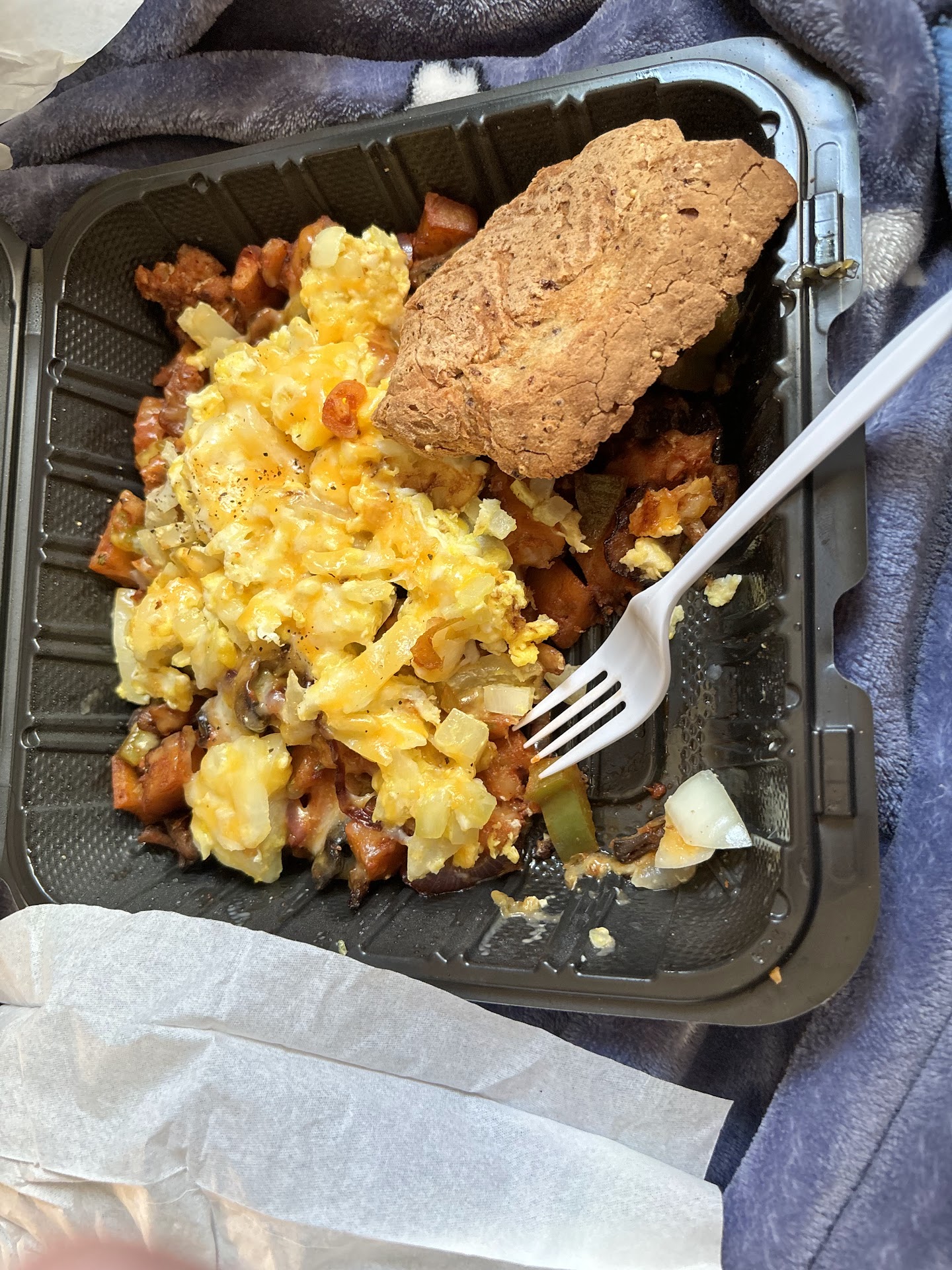 Read moreI searched google for gluten free and found this place. 0 stars- Starting with the parking lot-signage is confusing as it used to be a fast food restaurant with a drive thru. But we were starving- Husband had very dry biscuits (days old or out of a freezer bag) and gravy was definitely out of can. Gravy covered the hash browns it came with too so the plate looked like slop. Not very appetizing.