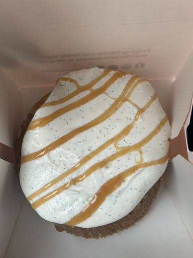 Wow, I was so happy to finally get to try the butter cake. Originally I tried to get a hold of the non-caramel butter cakes, they had a week or so ago, but couldnât make it in time. So as soon as this one dropped, I knew I had to stop by. Iâm literally obsessed with butter cake IDKY itâs just so good. And just as I had suspected, they did this butter cake right, from the vanilla bean topping to most importantly how they caramelize and crisp the outer shell of the cake. Thatâs exactly what Iâm looking for in a butter cake and it taste like butter, which I love. However, I canât speak highly about other Crumbl products. Pretty much Every other cookie ive tried has been horrible, including the honey bun cookie, which didnât taste anything like a honey bun and wasnât sweet at all. It just tasted like raw Dough. I will look out for any time they have cakes, but I wonât be trying anymore of their cookies. Definitely not worth it. We literally threw it...
