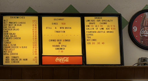 I ordered a comfort food breakfast Sandwich. Toasted Whole Wheat Toast, Egg, Cheese, Bacon and Mayo. I love that kind of sandwich. I was NOT disappointed. Now I want to go back for lunch for egg salad, tuna Salad or chicken salad. How did I miss the cultural gem all these decades. Want fancy, go somewhere else. Want history and taste, come to Gilchrist. I found my new place.
