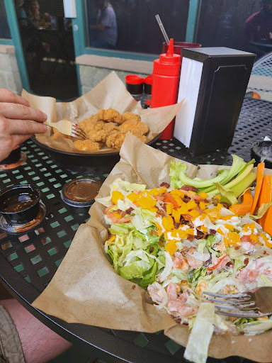 Read moreWe chose to eat outside since it was a nice day. This probably wasn't the greatest idea since it felt like we got forgotten about mostly. The patio had trash blowing around. My husband picked this place to try their burgers. The waitress took our drink order and came back 15 minutes later with drinks and finally the menus. It wasn't until we were reading the menu that we found that they have onions smashed into their burgers and my husband is allergic. So he opted for the wings. I settled with a house salad because I was not that hungry. Our food came about 30 minutes later. The wings are HEAVILY breaded and came with dipping sauce. The chicken is mush. The buffalo tastes like Tabasco sauce and the teriyaki sauce tastes like donut glaze it is so sweet. My salad was okay though the cheese was like plastic chicklets. All in all the food was mediocre at best. (Granted it is a burger place and we did not get the burgers so this may have been the entire issue). We love Brick Oven's wings and they are a pizza place...I will say the waitress automatically brought to go cups at the end so that always is a sign to me of a great server so she might have off her game in...