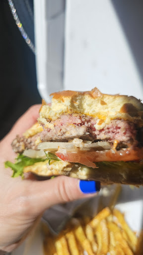 What a cute little place. We went for lunch, take out. Parking was ample, there's a green area to let our little dog go potty. Make sure you bring potty bags. No bags provided but there was a trash. Porta potties are out front for customer use. They were clean and fresh. No bugs either! No restroom inside for customers, only employees. The outside is adorable, inside feels small, had about 10 tables maybe. It had a modular building feel to it. I wasn't super impressed with the interior. But honestly it's not as important as the quality of service, cleanliness and food quality. They mostly met my expectations for those 3, the atmosphere inside didn't really matter. The outside seating area was great. Though I suggest they screen in the patio area to keep the bugs out. Flies were abundant, so much so that the 8 year old boy at the table near us asked how many different species of flies there were! He started pointing out all the different color flies that kept landing on his rather annoyed and uninterested mom. Kind of sad really. A great teaching and observation moment completely ignored & missed. Not to mention the encouragement of a clearly bright young mind. Oh well. Nevertheless, it was a great experience! The ladies inside, one in particular, were hopping! Handing out menus & taking orders as we came through the door and stood in line. While at the same time taking completed orders to the tables. After giving her our order we'd take a seat at a table inside or wait outside. Gave her a good tip! Not sure what the other brown haired, a bit older, lady was doing. Not much really. Poured herself a glass of lemonade, talked to a few people and walked away. There were 3 plates at the window ready to go to a table, but she ignored them. Perhaps she was on break. The burgers were really good. Hubby said cooked perfectly but I felt they needed a little more time on the grill for my liking. They were just a little pink in the center. I prefer mine all gray. Not to the point I wouldn't still eat it though. Fries were like eating limp noodles! But tasted really good. I'd 100% return off it were just my hubby and I again. Pricing was a bit much. $46 for the cheeseburger and fries meal, bacon and cheeseburger meal & 1 iced tea. With highest % tip on the screen, which I think was 25%. If I were feeding my family of 4 that one meal would have been nearly $100. We couldn't afford to eat here. Their shakes are on the dry erase board. No price provided. When I asked, she quoted $8! Wow. I would pay $5, never $8! That's ludicrous! I suggest crisper fries, larger drinks (fast food small size cup filled to the top with ice doesn't give much drink), and cooking the burgers 1 min more. After that it'll be 5 star. I've attached pics of hubby's bacon cheeseburger, my cheeseburger & the meal with...