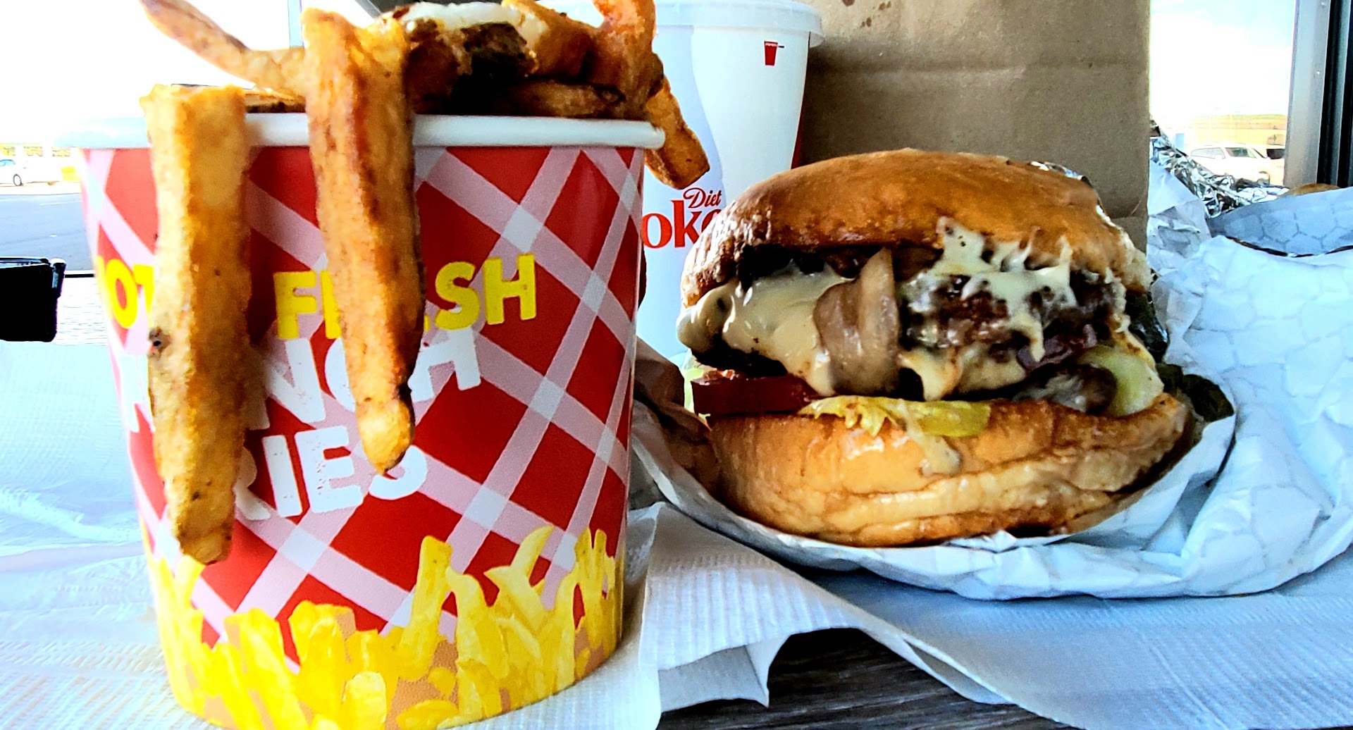 I love it when you get a burger bigger than the bun. I ordered a bacon cheeseburger and wow there was bacon sticking out of it from every direction. All you bacon lovers better line up.