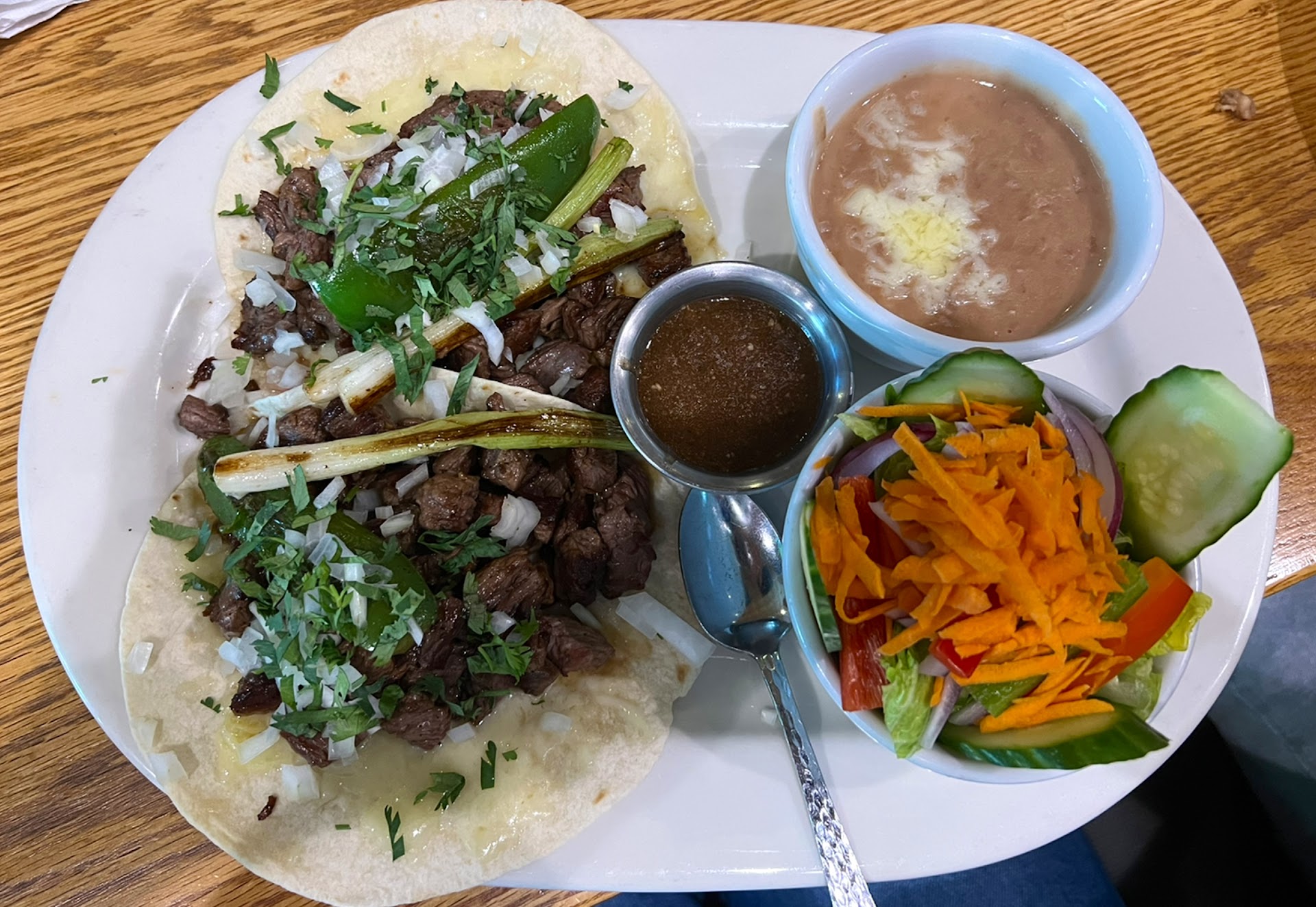 Additionally, I decided to substitute the side of rice with a salad, and I was pleasantly surprised by the quality and presentation. The salad was vibrant, consisting of crisp lettuce, colorful vegetables, and a tangy dressing that added a refreshing twist to the meal. It was the perfect accompaniment to the flavorful steak taco.