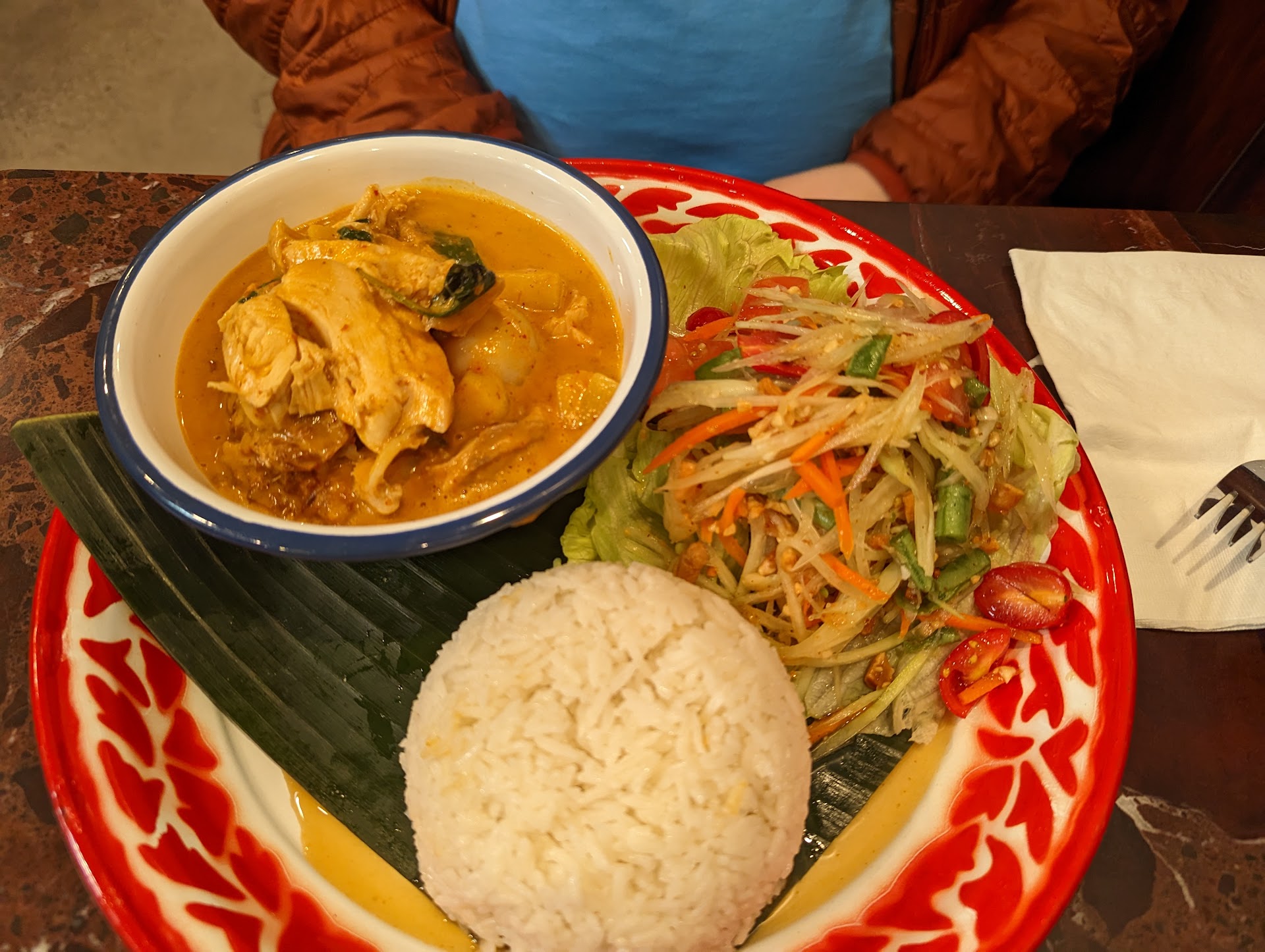 Read moreWe appreciated getting seated and having great food even though we arrived within about 30 minutes of closing time. The suggested chicken curry with papaya salad was great and the mussaman curry was also very nice. I was happy there were meal options available at this location so you got rice included in the price. The server checked in with us frequently and also made sure to see if we wanted dessert before the kitchen closed. The mango sticky rice was delicious, so I'm glad...