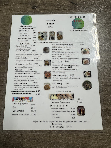 Read moreI just recently found out about this great Thai food restaurant closer to me in Willow Springs than having to drive all the way down to West Plains. I just did a search for lunch restaurants in Mountain View and was surprised to find this great place. My God, the portions are very well sized! I look forward to coming here again before moving to Springfield. I wish I knew about this establishment before my late wife passed away, we both love Thai food from L.A. I highly recommend Bistro Fried Rice if you're interested in Thai food. The prices are fair, considering the size of the...