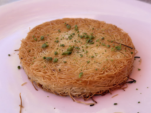 The food: Lamb chops- Probably the best item I've had here. My dad will hate me for saying this but usually I don't like lamb because it's too gamey for me. The way it's cooked and seasoned here is easily the best lamb I've eaten (sorry Dad, your kibbeh bil sanieh isn't winning this), and even though I requested for it to be well done, it was tender. The pilaf and vegetables on the side compliment it nicely. Mezze platter- Also super good! My favorites are the dolmas and falafel. I'd recommend getting this your first time coming here to find out what you like the most. Greek salad- I didn't try it but my sister said it's really good :) Baklava- Pretty tasty! I will say baklava isn't my favorite dessert item but it's really good here, like everything else. I'll definitely order it again Kunefe- omg so good. Seriously, try it if you haven't before. Sweet with a little savory. The cheese isn't too strong, but you can definitely tell it's there, which is perfect. Turkish coffee- perfect to go with dessert. I took mine with less sugar and it was very smooth and comforting.