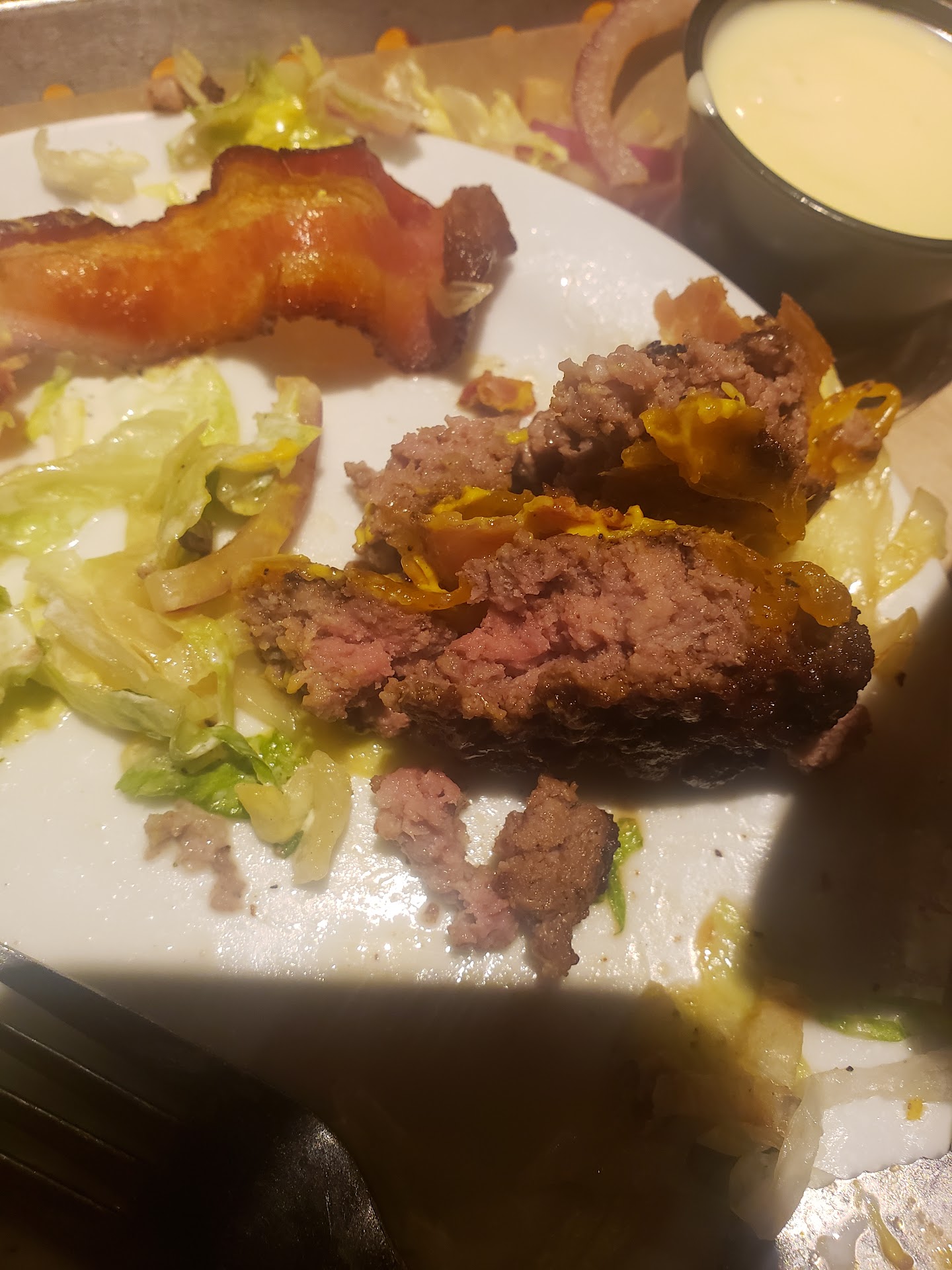 The carne asada was cooked to the temperature I requested and would have been great if they didn’t smother it with the cilantro pesto as it is very overpowering. My husband enjoyed his burger and the fries came out hot and tasty. If the level of service came anywhere close to the quality of the food, it may have been a good visit.