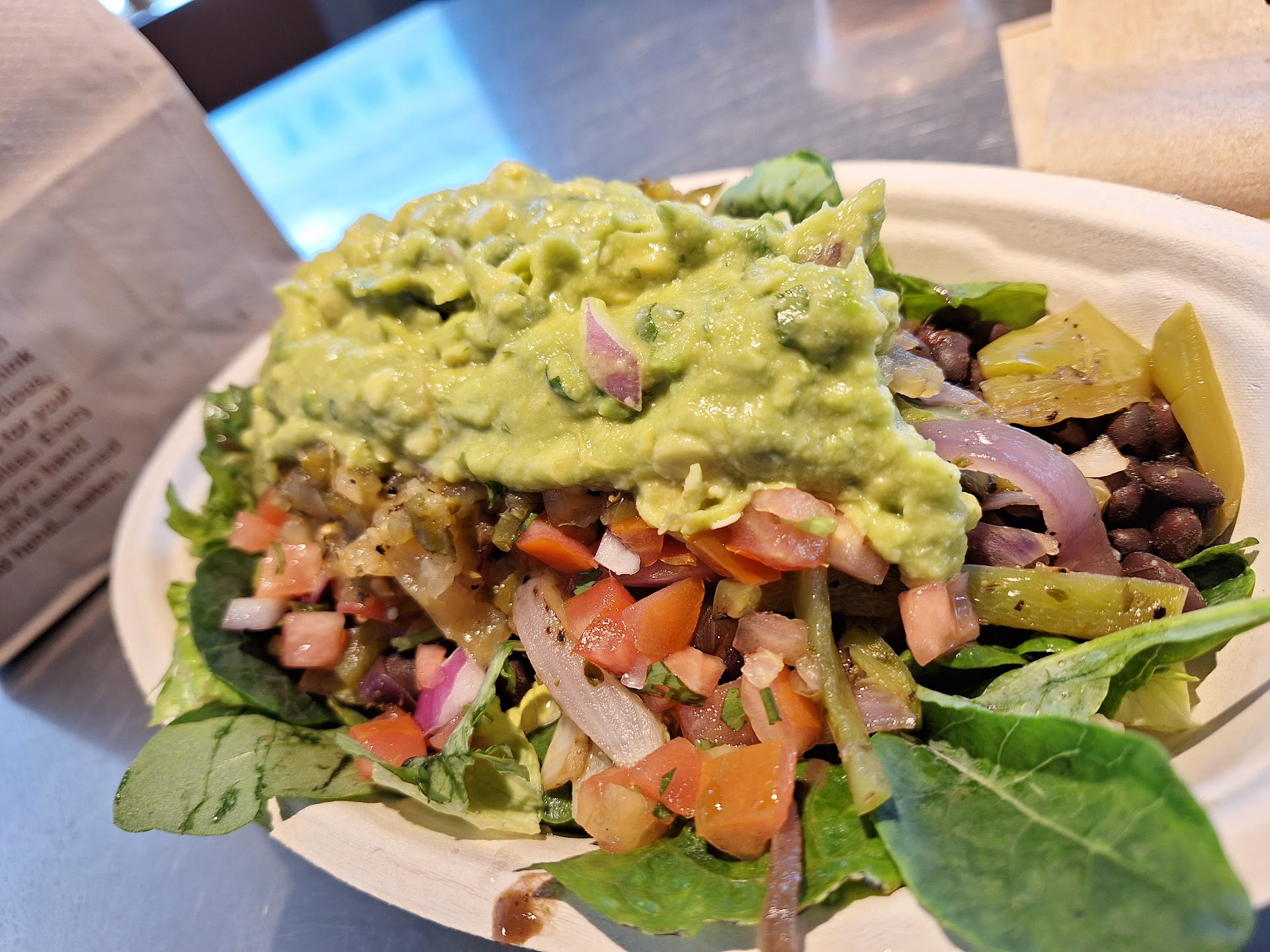 Upon entering the establishment, I was greeted by the vibrant atmosphere and the friendly staff, which immediately set a positive tone for the dining experience. I ordered a Salad Rice Bowl, opting for a half-and-half mix of white and brown rice, black and pinto beans, veggie sofritas, accompanied by their heavenly guacamole and chips.