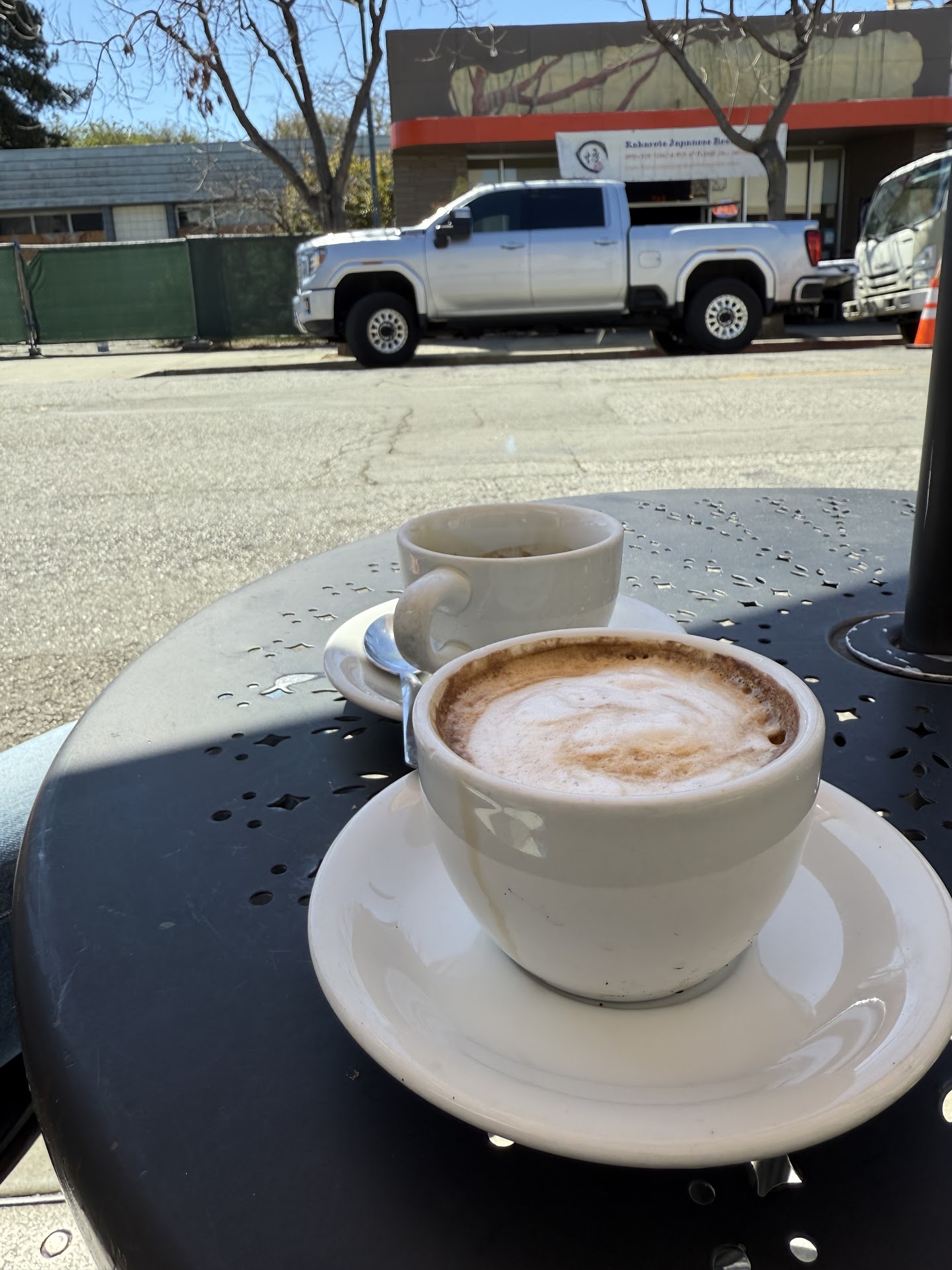 Read moreThe best espresso on Castro Street at the best price! Awesome selection of espresso drinks too: they have the standards, plus flavored drinks like a Mexican Mocha. Not the most fancy digs, I like the review that described it as "more hippie than hipster" (it's a compliment). Very roomy inside but there's no seating as of Feb 2022 - about 4 good-sized tables outside, with sun umbrellas.