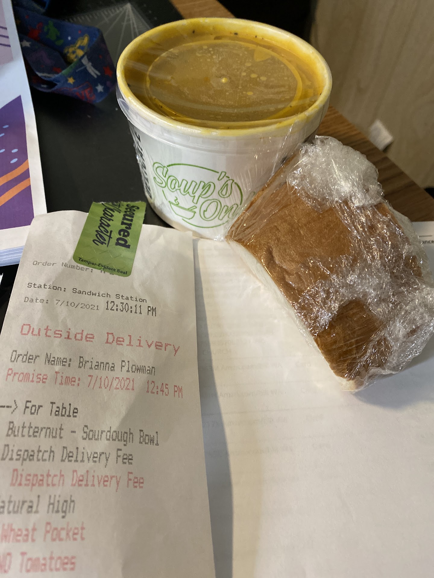 Ordered from Grubhub at 6 PM. Stayed in a hotel with a clear sign and easily found by others (e.g., Uber) via GPS. It's 7:30 now and the food still isn't here. Driver first went to a gas station, even though I specified my room number in my address. I don't know why he would think a gas station would contain a specific room number. He then suggested I meet him at a different hotel nearby. It took the driver 10 minutes of driving in a square 1/10th of a mile to find the hotel. My order was a sandwich and a cookie. It will remain a mystery for the rest of my life as to why it took this place more than an hour to prepare the sandwich and put a cookie in a...