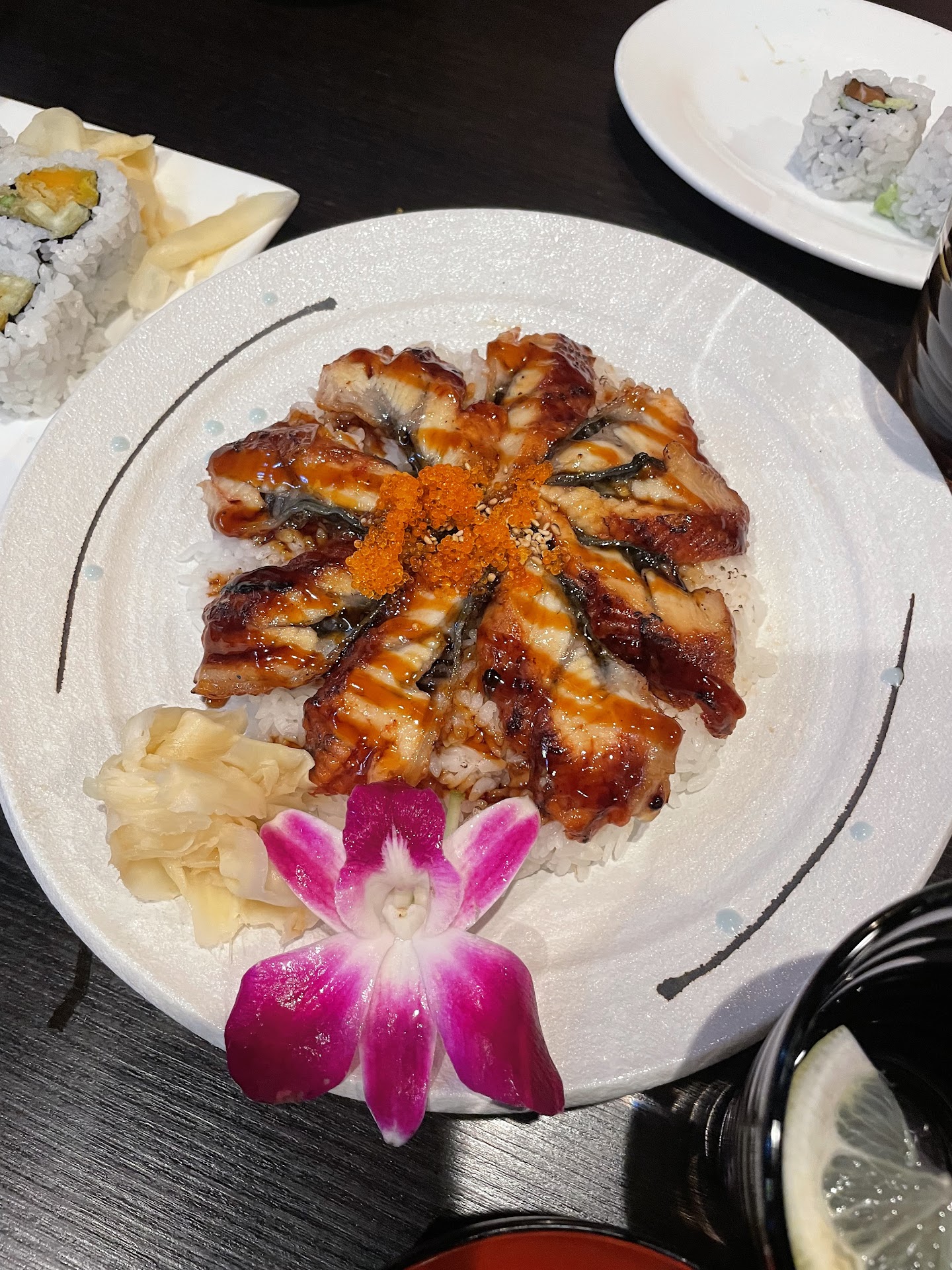 The food itself was GREAT. I got the Unagi Donburi which was an eel dish. The dish came with a bomb unagi sauce that tasted a little like a zesty thicker teriyaki which complemented the fattiness of the eel amazingly. The dish was the perfect portion for me to finish in the restaraunt and be full. The dish also interestingly came with some orange savory fish roe that popped. The eel was SO tasty. It was a little fatty and very tender with no overfishy taste emanating. It was overall an amazing dish that came with lots of rice. The dessert was a little less appetizing. We got strawberry and mango mochi which was ok. It tasted like one of the Trader Joe’s mochi, but the presentation was beautiful and the price wasn’t exorbitant.